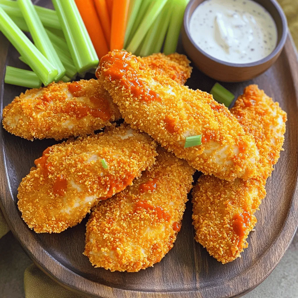 Pair your tenders with fresh sides for a well-rounded meal. Celery sticks and carrot sticks add crunch and color. They also help cool down the heat from the buffalo sauce. Dipping sauces like ranch or blue cheese dressing are perfect for extra flavor. These sides make your meal fun and tasty!