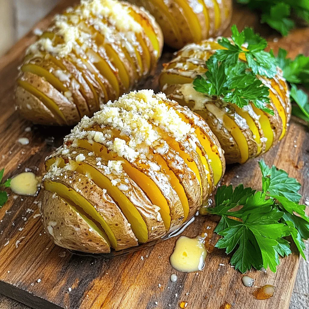 These ingredients work together to create a rich and crispy potato dish. The russet potatoes shine here, with their starchy texture perfect for Hasselback style. The garlic and Parmesan add a delicious flavor. Fresh parsley brightens the dish with color and taste.