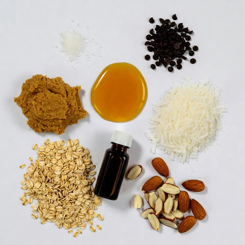These ingredients work together to create a delightful snack. The rolled oats give a nice base. Almond butter adds creaminess and healthy fats. Honey or maple syrup gives sweetness. Shredded coconut brings a tropical twist. Dark chocolate chips add rich flavor. Chopped almonds provide a nice crunch. Vanilla extract gives warmth, and sea salt enhances all the flavors.