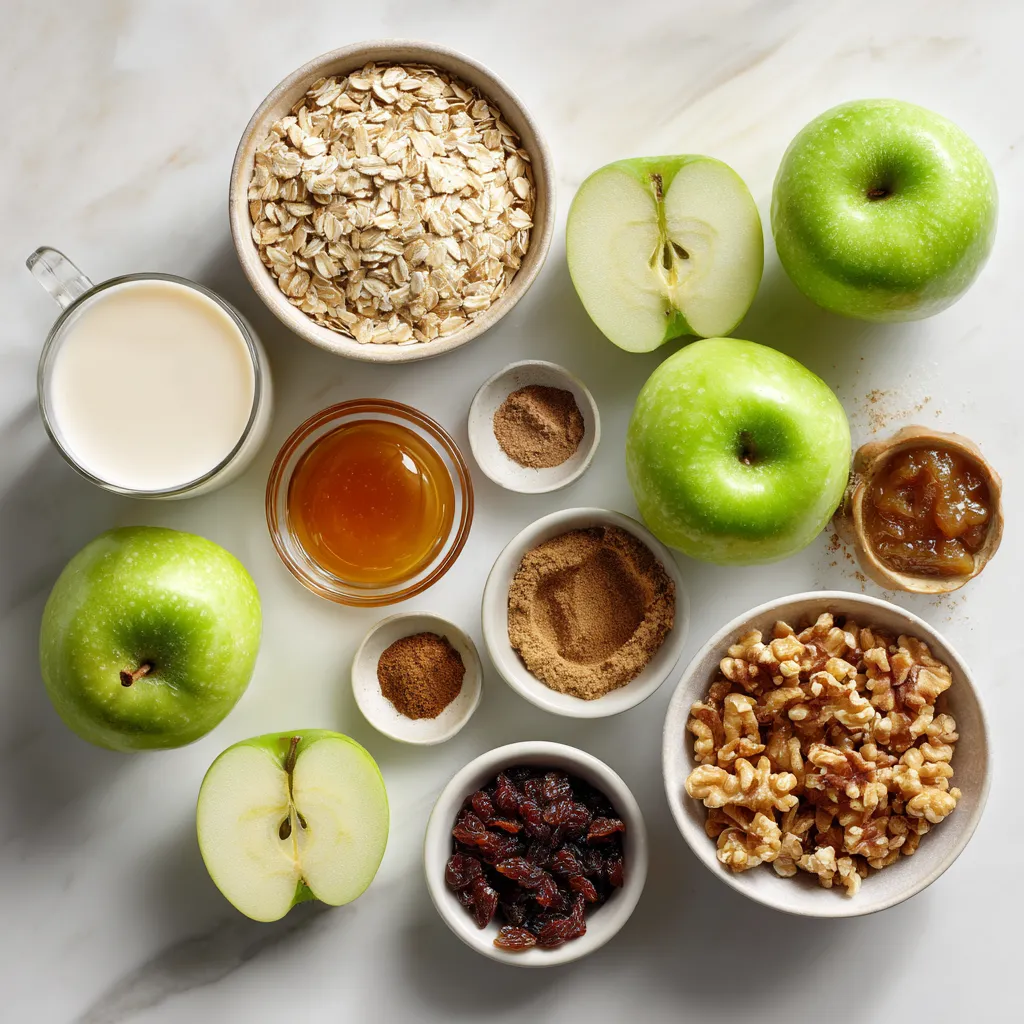 These ingredients work well together. The oats are the base, while the apples add sweetness and flavor. The almond milk keeps it moist, and sweeteners like maple syrup or honey enhance the dish. Ground cinnamon gives that classic apple pie taste.
