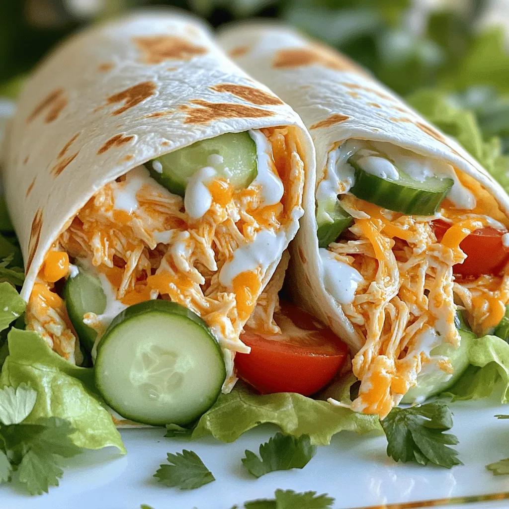 To make the best Buffalo Ranch Chicken Wraps, start with quality ingredients. Use cooked chicken, shredded from a rotisserie or cooked at home. Mix the chicken with buffalo sauce and ranch dressing in a bowl. This step gives the chicken flavor and moisture. Next, prepare your tortillas by laying them flat. Fill each tortilla with lettuce, tomatoes, cucumbers, and the chicken mix. Top with cheddar cheese. Season with salt and pepper. Fold and roll them tight. If you want a crisp wrap, toast them in a skillet for a few minutes. This adds a great crunch.