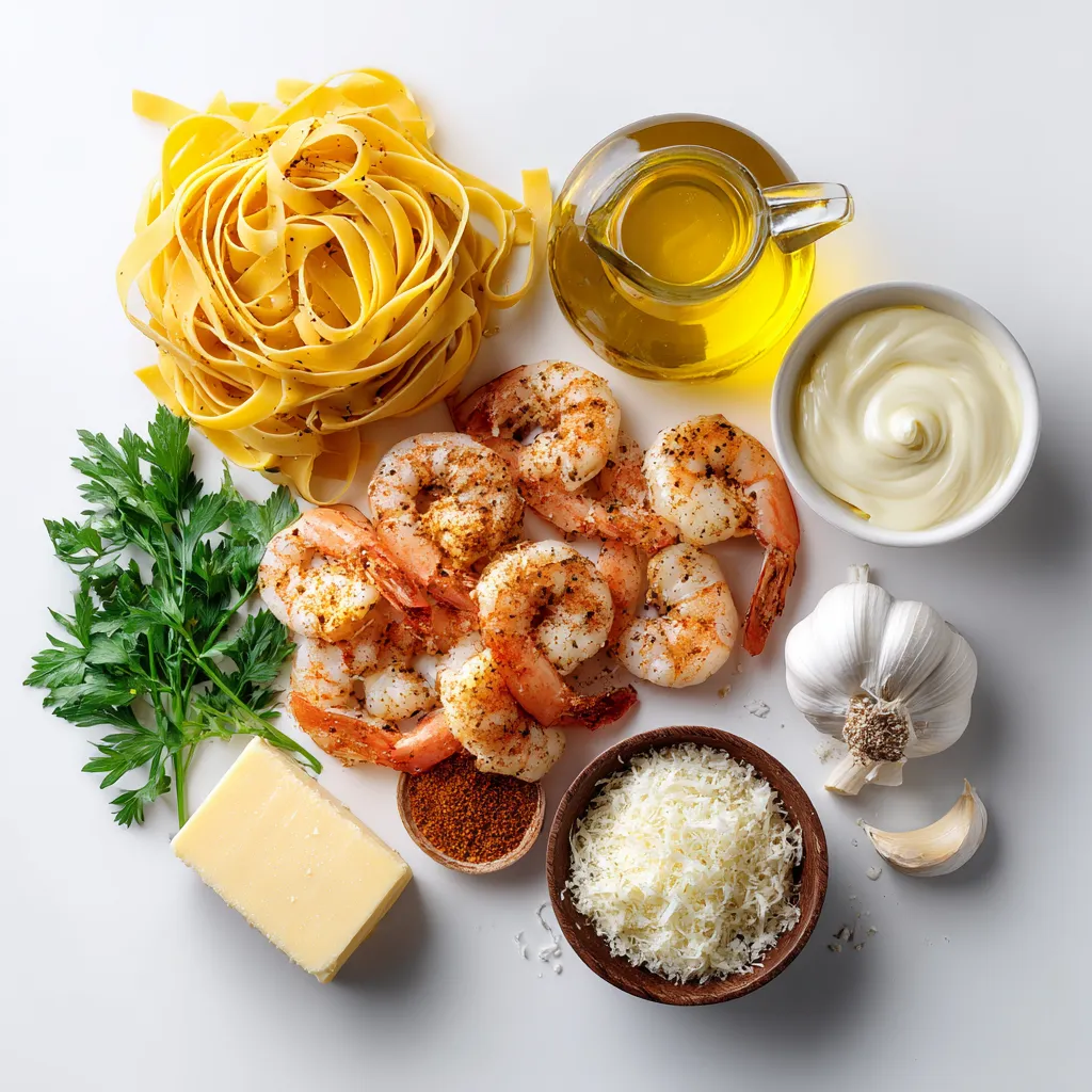 To make Cajun Shrimp Alfredo, you need simple, fresh ingredients. Start with fettuccine pasta. This type of pasta has a wide shape that holds the sauce well. You will also need large shrimp, peeled and deveined for easy cooking. The Cajun seasoning gives the shrimp a spicy kick.