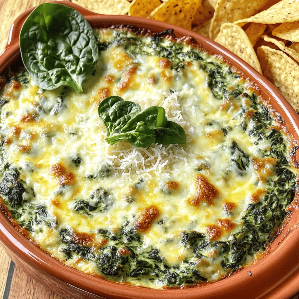 You can boost your cheesy baked spinach dip with added protein. Cooked chicken, diced and mixed in, adds richness. Crispy bacon crumbles provide a smoky flavor. Both options make the dip heartier. For chicken, use rotisserie for ease. For bacon, choose thick cut for more texture.