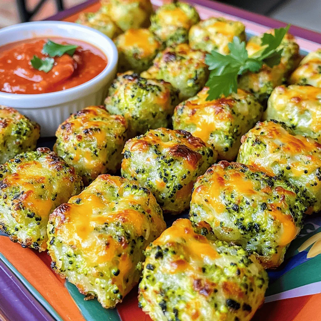 These cheesy broccoli tots taste great with dips! Marinara sauce adds a nice tang. Ranch dressing gives a creamy touch. Serve them on a colorful platter. Add fresh parsley for a pop of color. This makes your snack look as good as it tastes!