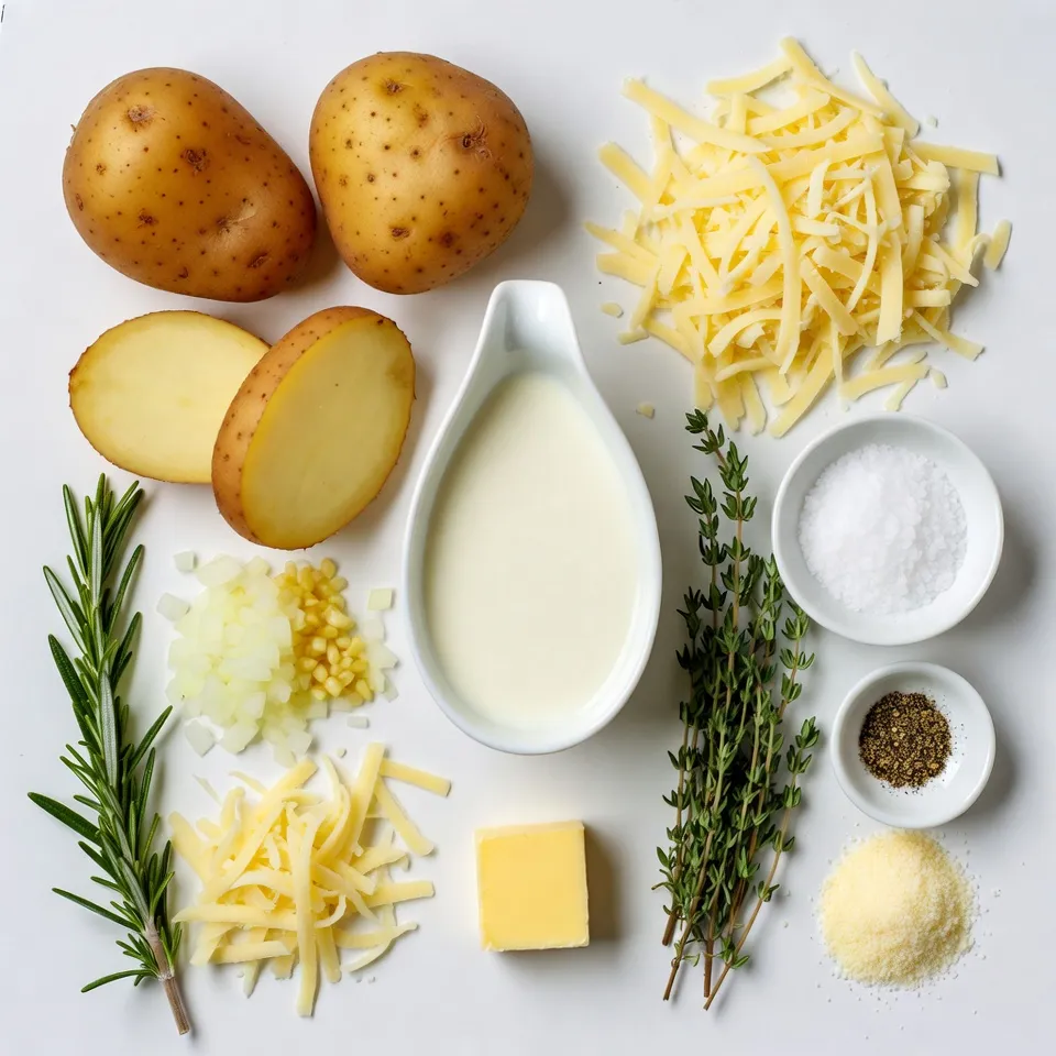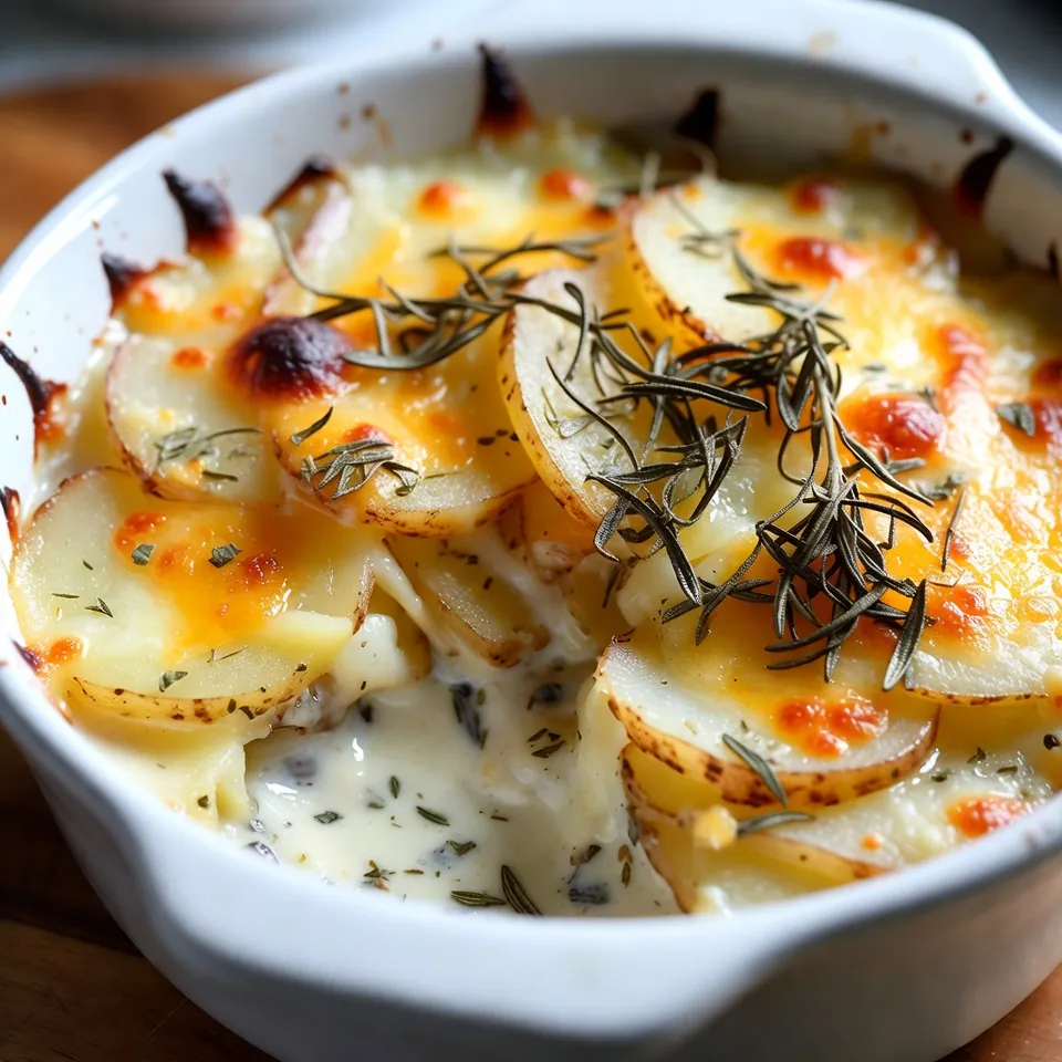 A creamy and cheesy potato dish infused with garlic and herbs, perfect for any occasion.