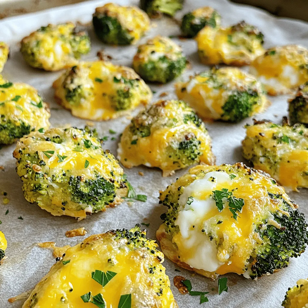 ![For this tasty snack, start with fresh broccoli florets. You need 2 cups. Fresh broccoli gives a bright flavor and crisp texture. Look for firm stems and dark green heads. This will make your bites pop with color and taste. Next, we add the cheese! You will need two types: 1 cup of shredded cheddar cheese and 1/4 cup of grated Parmesan cheese. Cheddar adds a rich, creamy base, while Parmesan gives a nice, salty kick. Together, they melt beautifully and make these bites so cheesy. Now, let’s spice things up! Gather these ingredients: - 1/2 cup cream cheese, softened - 1/2 cup breadcrumbs - 1 teaspoon garlic powder - 1 teaspoon onion powder - 1/2 teaspoon black pepper - Salt to taste - 2 tablespoons olive oil - Fresh parsley, chopped (for garnish) The cream cheese makes the mixture smooth. Breadcrumbs add crunch. Garlic and onion powders bring flavor. Olive oil helps everything roast well. Don’t forget to sprinkle salt to make all the flavors shine. For a nice touch, add fresh parsley at the end. For the full recipe, check out the earlier section. First, set your oven to 400°F (200°C). This hot heat will help our bites crisp up nicely. Next, grab a baking sheet and line it with parchment paper. This keeps the bites from sticking and makes for easy cleanup. In a big bowl, add 2 cups of fresh broccoli florets. Drizzle in 2 tablespoons of olive oil. Then, sprinkle in 1 teaspoon each of garlic powder and onion powder, plus 1/2 teaspoon of black pepper and salt to taste. Toss the broccoli well so it gets coated in tasty oil and spices. Spread the coated broccoli on your lined baking sheet in a single layer. Roast it in the oven for about 15 minutes. You want the broccoli to be tender and a bit crispy. While the broccoli roasts, let’s make the cheesy mix. In another bowl, combine 1 cup of shredded cheddar cheese, 1/2 cup of softened cream cheese, and 1/4 cup of grated Parmesan cheese. Add 1/2 cup of breadcrumbs to this mix. Stir it all together until it’s well combined. After the broccoli has roasted for 15 minutes, take it out and let it cool for a few minutes. Once cool, chop the broccoli into smaller, bite-sized pieces. Add these pieces to the cheesy mixture and fold everything together until combined. Now, form small bite-sized balls from the mixture with your hands or a spoon. Place them back on the baking sheet. Return the baking sheet to the oven and bake for another 10 to 12 minutes. You want them golden and bubbly. When ready, remove them from the oven and let them cool for a couple of minutes. Garnish with fresh chopped parsley before serving. For the full recipe, refer to the earlier sections. Enjoy your cheesy roasted broccoli bites! To make your cheesy roasted broccoli bites even more tasty, try adding herbs. Fresh thyme or basil can add a nice touch. You can also mix in some red pepper flakes for heat. If you want a smokier flavor, sprinkle in some smoked paprika. Experiment with different seasonings to find your favorite combo! The key to great bites is the right mix of ingredients. Make sure your cream cheese is soft. This helps it blend well with the other cheeses. When you chop the broccoli, keep the pieces small. This ensures they mix evenly in the cheesy mixture. Don't skip the breadcrumbs! They add a nice crunch. These bites shine as a snack or appetizer. Serve them warm for the best taste. Pair them with a creamy dip like ranch or a spicy sriracha mayo. For a fun twist, try them with a sweet chili sauce. You can also add a side salad to make it a full meal. For the full recipe, you can refer back to the main section. {{image_2}} You can mix and match cheeses for tasty bites. Try mozzarella for a gooey texture. Feta adds a tangy kick. Gouda gives a smoky flavor. Experiment with your favorites to find the best blend. You can boost nutrition by adding more veggies. Chopped carrots or bell peppers add crunch and color. Spinach brings freshness and extra vitamins. Just make sure to chop them small so they mix well with the broccoli. If you need gluten-free bites, use gluten-free breadcrumbs. You can also crush rice crackers or oats as a substitute. These options work great and keep the texture nice. Just make sure to check labels for any hidden gluten. For the complete recipe, check the [Full Recipe]. To keep your cheesy roasted broccoli bites fresh, store them in an airtight container. This helps lock in moisture and flavor. I recommend placing a paper towel inside the container. It absorbs extra moisture and keeps the bites crisp. You can store them in the fridge for up to three days. If they sit longer, they may lose their taste and texture. Freezing is a great option if you want to save some bites for later. First, let the bites cool completely. Then, place them on a baking sheet in a single layer. Freeze them for about one hour. This will stop them from sticking together. Once they are firm, transfer them to a freezer-safe bag. They can last for up to three months in the freezer. When you are ready to eat them, just thaw and reheat. To enjoy the best flavor, reheat your cheesy bites in the oven. Preheat your oven to 350°F (175°C). Place the bites on a baking sheet and cover them with foil. This helps keep them moist. Heat for about 10-15 minutes. If you want a crispier texture, remove the foil for the last 5 minutes. You can also use a microwave, but the bites may lose some crunch. For a quick snack, the oven is the best choice! Yes, you can use frozen broccoli. Just thaw it first. Drain the water well. This step helps keep the bites from getting soggy. Remember, frozen broccoli cooks faster. So, check for doneness sooner than fresh broccoli. Add some crushed red pepper flakes or cayenne pepper. Mix them into the cheesy mixture. You can also use spicy cheese, like pepper jack. This will give your bites a nice kick. Adjust the amount to suit your taste. I love serving these bites with ranch dressing. It adds a creamy touch. You can also try a spicy sriracha may