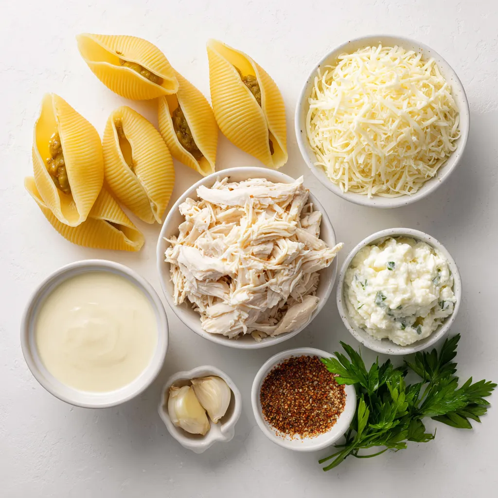Here are the ingredients you need for Chicken Alfredo Stuffed Shells. Each one plays a key role in creating a rich, creamy dish that your family will love.