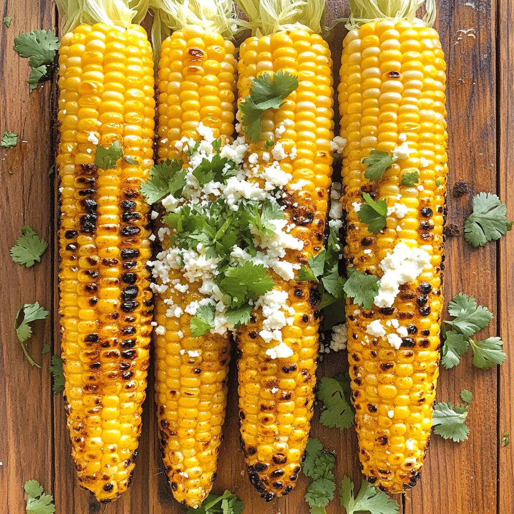 Serving your corn with extras adds fun. Crumbled cotija cheese gives a creamy touch. Fresh cilantro adds a nice pop of color and flavor. You can also serve with lime wedges. A squeeze of lime juice brightens every bite. Pair your corn with grilled meats or tacos. This dish goes well with any summer meal. Enjoy the flavors and share with friends!