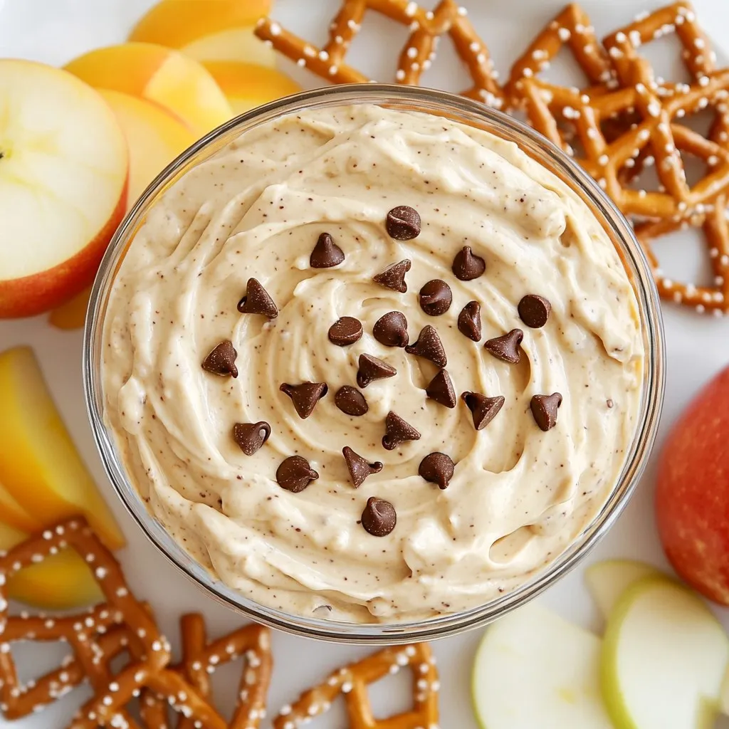 To make it even more appealing, arrange sliced apples, pretzels, and graham crackers around the dip. You can sprinkle extra mini chocolate chips on top for a nice touch. This setup not only looks great but also invites everyone to dig in!