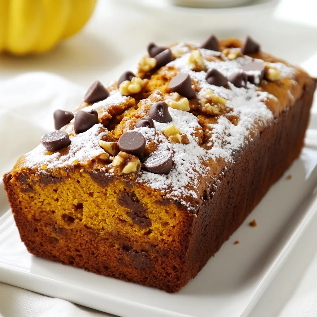 A deliciously moist bread combining pumpkin and chocolate flavors, perfect for fall.