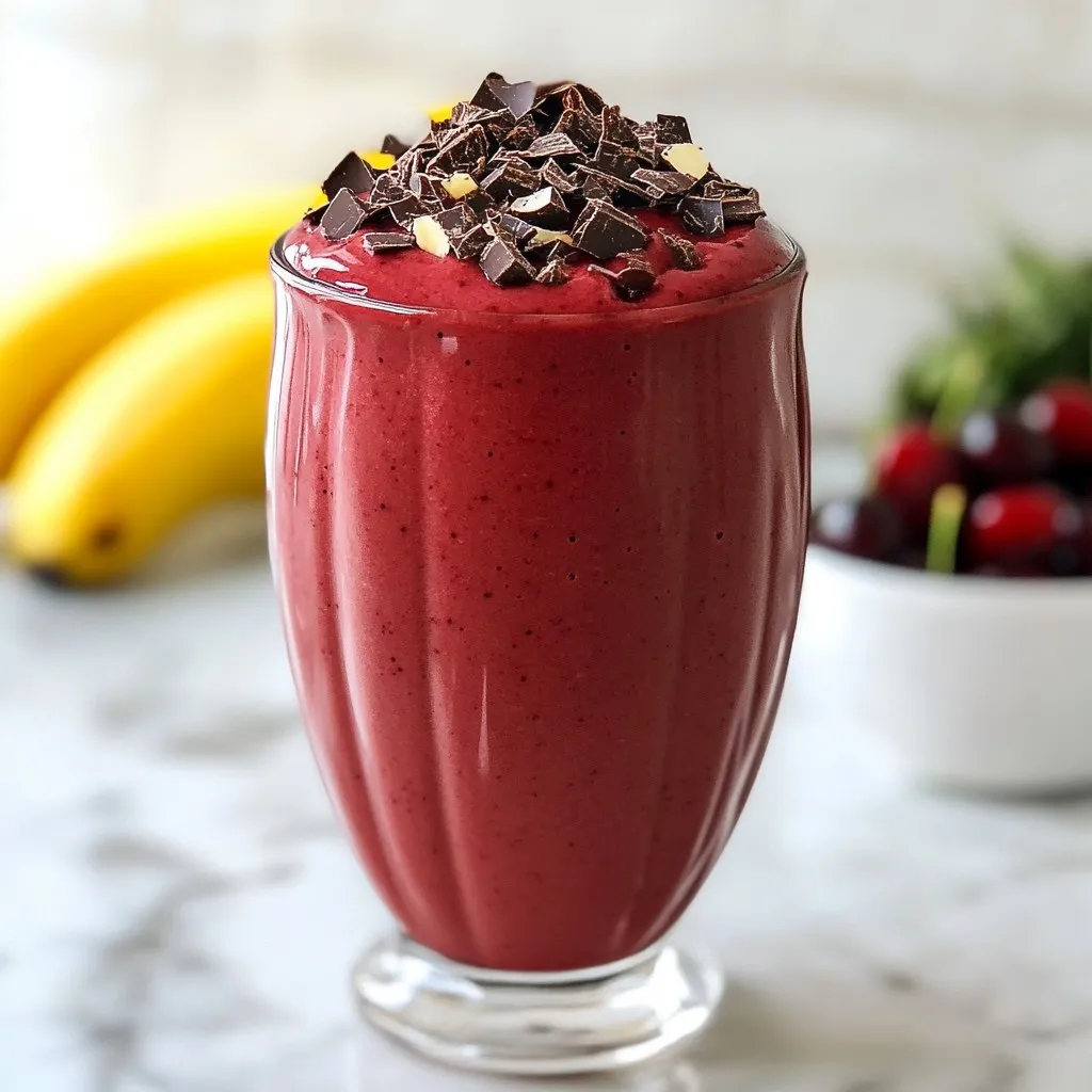 A delicious and creamy smoothie combining the flavors of chocolate and cherries.