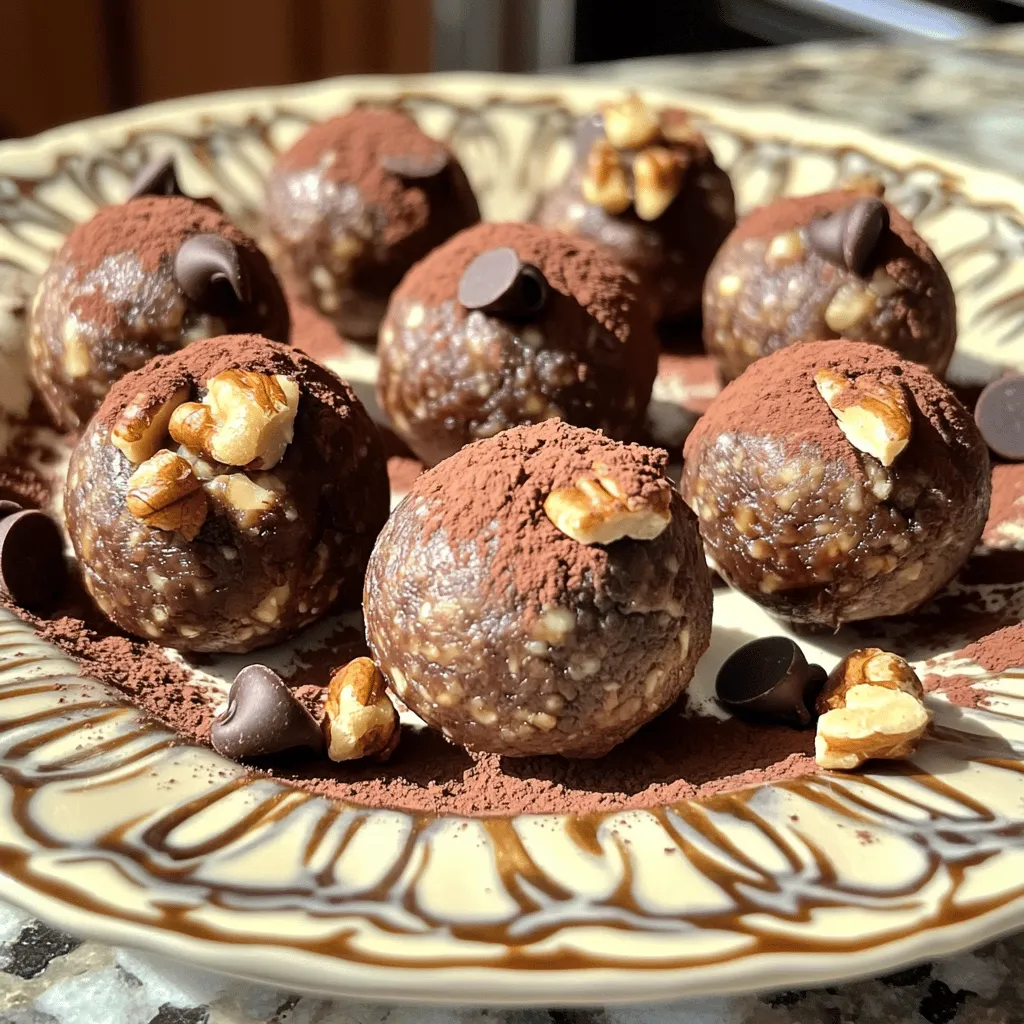 1. Serve the energy balls on a pretty plate. Sprinkling cocoa powder or chopped nuts around them makes a nice touch.