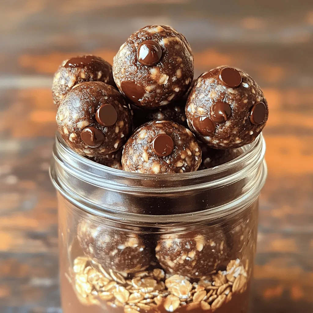 ![- 1 cup rolled oats - ½ cup creamy peanut butter - ¼ cup honey or maple syrup - ¼ cup unsweetened cocoa powder - ½ cup chocolate chips (dark or semi-sweet) - ¼ cup ground flaxseed (optional) - 1 tsp vanilla extract - A pinch of salt In making Chocolate Peanut Butter Energy Balls, you need simple and wholesome ingredients. Each one serves a purpose and adds to the taste and nutrition. What do these ingredients do? - Rolled oats: They form the base. They give fiber and keep you full. - Creamy peanut butter: It adds rich taste and protein. I love the smooth texture it brings. - Honey or maple syrup: This is your natural sweetener. It binds the mix and adds sweetness. - Cocoa powder: It gives that deep chocolate flavor. It also packs a punch of antioxidants. - Chocolate chips: They add a burst of sweetness. You can use dark or semi-sweet. - Ground flaxseed: This optional ingredient gives extra fiber and omega-3s. It’s a great way to boost nutrition. - Vanilla extract: Just a teaspoon enhances all the flavors. It makes everything taste wonderful. - A pinch of salt: It balances the sweetness. It brings out all the flavors nicely. - Calories per serving: About 150 calories per energy ball. - Protein, fat, and carbohydrate breakdown: Each ball has around 4g protein, 8g fat, and 18g carbs. - Health benefits of key ingredients: - Oats help with digestion and provide lasting energy. - Peanut butter is a good source of protein and healthy fats. - Cocoa powder offers antioxidants and may improve mood. - Flaxseed adds fiber, promoting heart health. The combination of these ingredients makes the energy balls not just tasty but also a nutritious snack. If you want to see the full recipe, check out the section above. First, you need to mix the oats, cocoa powder, and flaxseed in a large bowl. This step is key. It ensures that the dry ingredients blend well. If you use flaxseed, it adds fiber and omega-3s. Balancing dry ingredients helps the energy balls hold together. Next, grab another bowl and combine peanut butter, honey or maple syrup, and vanilla extract. Stir well until everything is smooth. This part is important for getting the right consistency. If the mixture is too thick, it won’t blend well with the dry ingredients. Now, it’s time to form the energy balls. Use your hands to scoop out small portions. Aim for about one inch in diameter. Rolling them tightly helps them stay firm. After shaping, place the balls on a lined baking sheet. Refrigerate for about 30 minutes to set. This step makes them easier to eat and enhances their flavor. For the complete recipe, check the Full Recipe section. To make the best energy balls, aim for a thick and slightly sticky dough. You want it to hold together well but not be too wet. If it feels dry, add a touch more peanut butter or honey. If it's too wet, mix in a bit more oats. I recommend using a sturdy spatula for mixing. It helps combine everything well without too much effort. For best freshness, store your energy balls in an airtight container. They keep well in the fridge for up to a week. To extend their shelf life, you can freeze them. Just place them in a freezer-safe bag or container. They will last for about three months in the freezer. When you want to enjoy them, let them thaw in the fridge overnight. To make your energy balls look appealing, arrange them in a mason jar or on a nice plate. You can also dust them with cocoa powder for a fancy touch. Pair these energy balls with a glass of milk or a warm cup of tea. They also taste great with fresh fruit or yogurt for a balanced snack. Feel free to explore the [Full Recipe] for more ideas! {{image_2}} You can easily change the flavor of your energy balls. Adding spices like cinnamon or nutmeg gives them warmth and depth. Just a pinch can make a big difference. You can also swap peanut butter for almond or cashew butter. Each nut has its own unique taste. This lets you create a special twist to fit your mood. Texture can change how we enjoy food. Incorporating crunchy nuts or seeds adds a fun bite. Chopped almonds or sunflower seeds work great. You can also use different types of chocolate. Dark chocolate offers a rich taste, while milk chocolate is sweeter. These small changes can make your energy balls exciting every time. Dietary needs vary for everyone. To make these energy balls gluten-free, just use gluten-free oats. You can also make them vegan by swapping honey for maple syrup. This keeps the sweetness while meeting dietary needs. If you want lower sugar, try using stevia or monk fruit sweetener. These options help you enjoy a tasty treat without the extra sugar. Chocolate peanut butter energy balls last about one week in the fridge. Keep them in an airtight container to maintain freshness. If stored properly, they stay tasty and safe to eat. Refrigeration helps firm up the energy balls. This makes them easier to handle and enjoy. To freeze energy balls, place them in a single layer on a baking sheet. Make sure they are not touching. Freeze them for about an hour. Once frozen, transfer them to a freezer-safe container or bag. When you want to eat one, thaw it in the fridge overnight. This helps keep the flavor and texture just right. I recommend using glass jars or plastic containers with tight lids. These types of containers keep air out and help maintain freshness. Airtight sealing is key to stopping moisture and odors. Always label your containers with the date you made the energy balls. This way, you know how long they have been stored. Chocolate peanut butter energy balls last about one week in the fridge. They stay fresh in an airtight container. If you freeze them, they can last up to three months. Just make sure to thaw them in the fridge before enjoying. Yes, you can easily customize the ingredients! Here are a few ideas: - Swap creamy peanut butter for almond or cashew butter. - Add dried fruits like cranberries or raisins for sweetness. - Mix in seeds such as chia or p