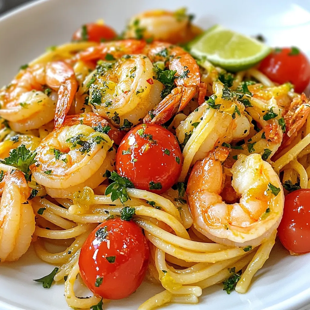 Each ingredient plays a key role in this dish. The pasta serves as the base, while the shrimp adds protein. Olive oil brings richness. Garlic and red pepper flakes provide warmth and flavor. Lime zest and juice give a fresh kick that brightens each bite. Cherry tomatoes add a sweet burst, and cilantro brings freshness. Don’t forget salt and pepper to enhance the flavors. If you like cheese, grated Parmesan is a tasty finish.