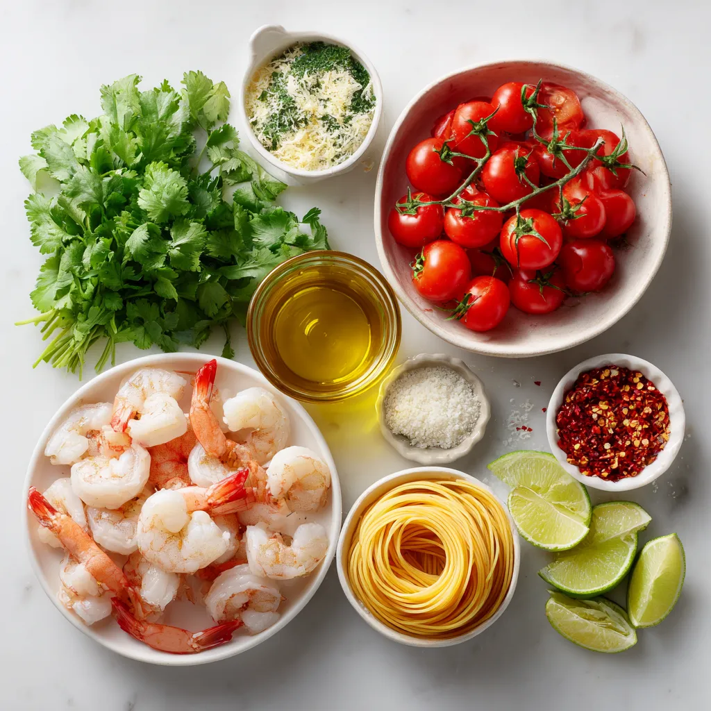 To make the Cilantro Lime Shrimp Pasta, gather these fresh and simple ingredients: