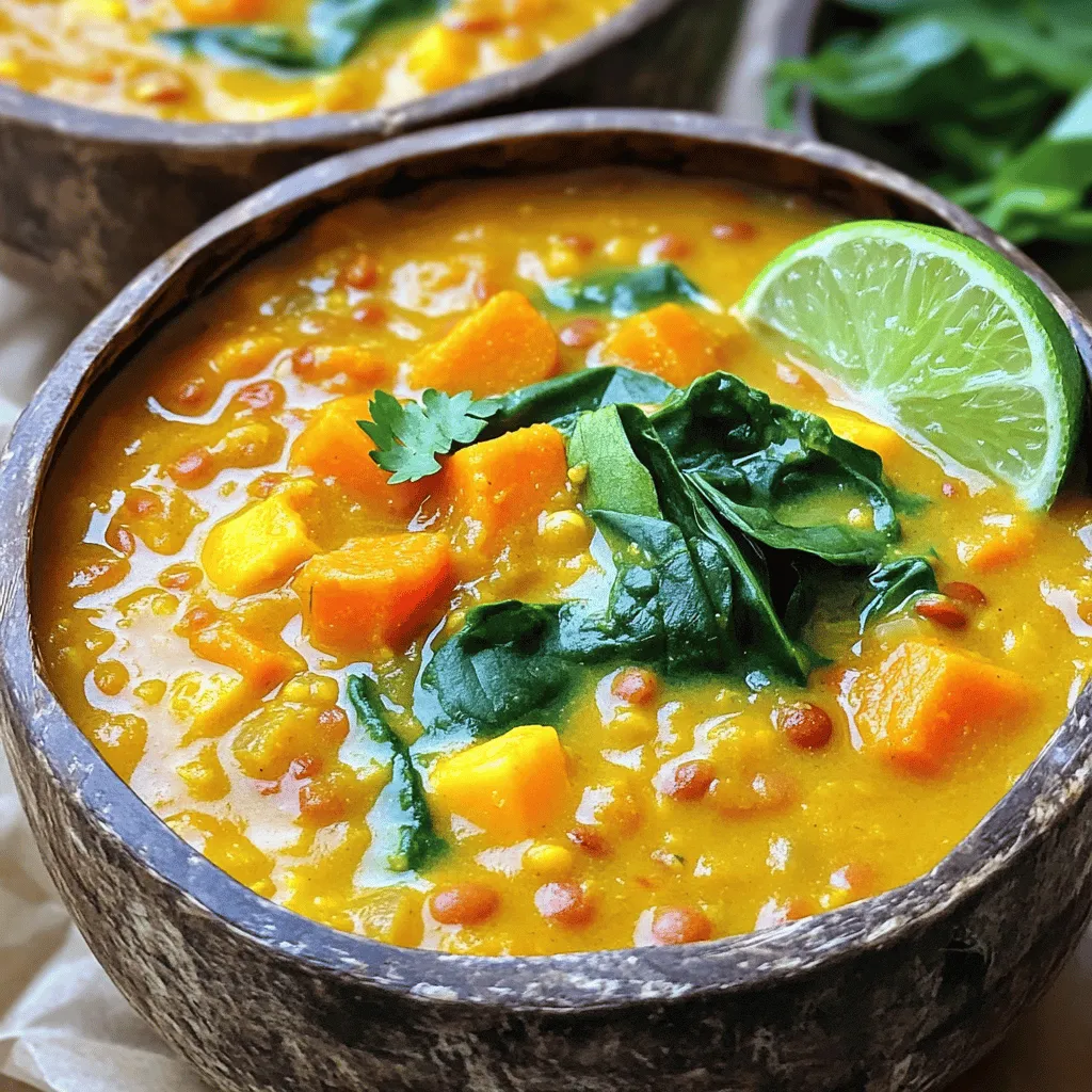 These ingredients give the soup a rich flavor and hearty texture. The red lentils cook quickly and add protein. Coconut milk makes it creamy and rich. The spices bring warmth and depth to each bowl.