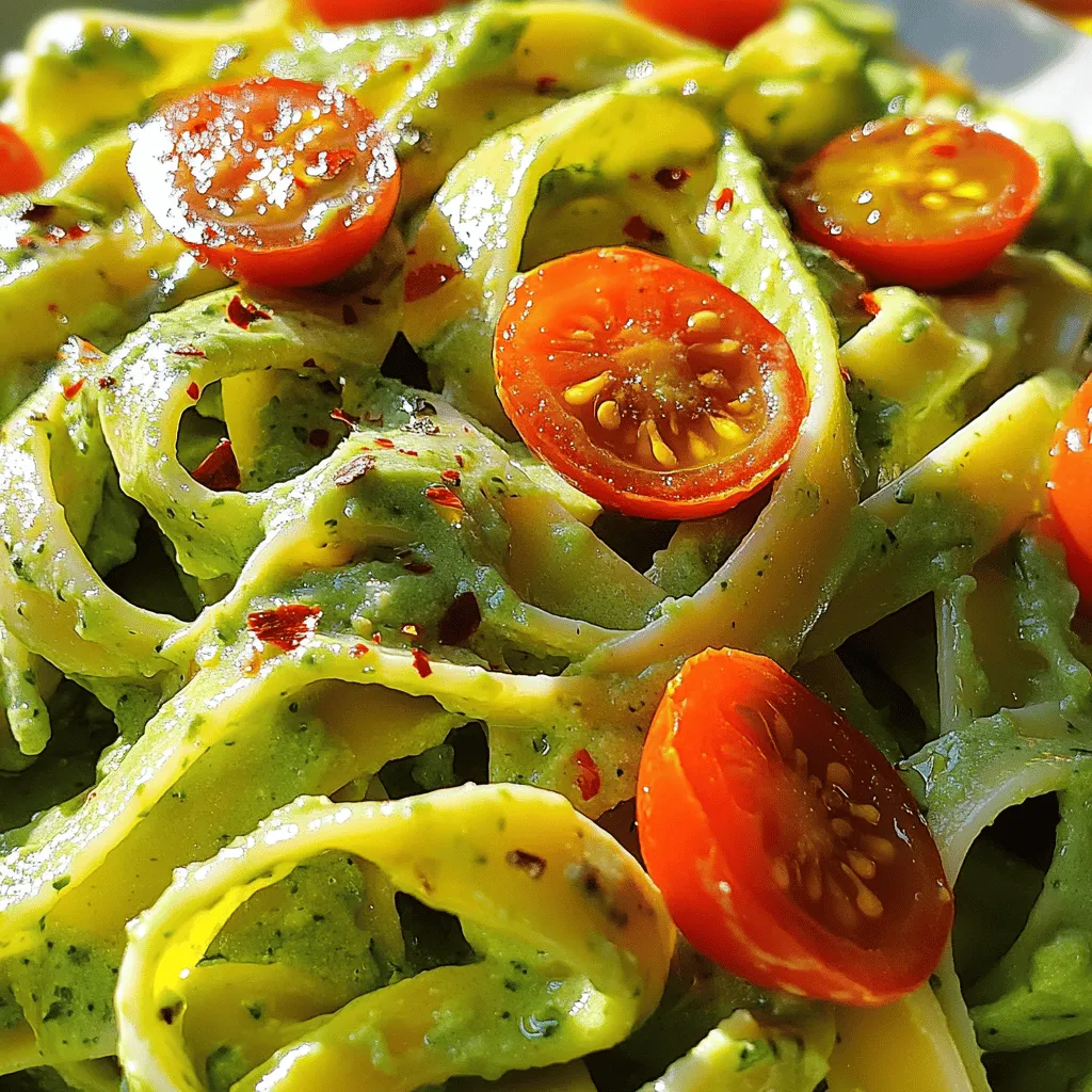 These ingredients create a rich, smooth sauce that coats the pasta perfectly. The avocados add creaminess, while cilantro brings fresh flavor. Garlic and lime juice enhance the taste, making each bite a delight.