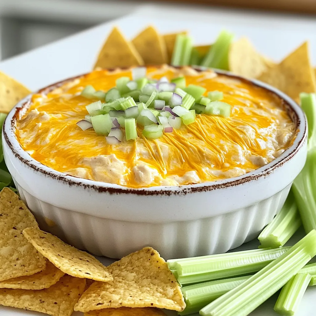 For game day, serve with tortilla chips, celery sticks, and crackers. This makes it fun and easy to dip. If you are hosting a party, present the dip in a rustic bowl. Top it with chopped green onions for a pop of color. Arrange an assortment of dippers around the bowl. This adds a festive touch and invites guests to dig in.