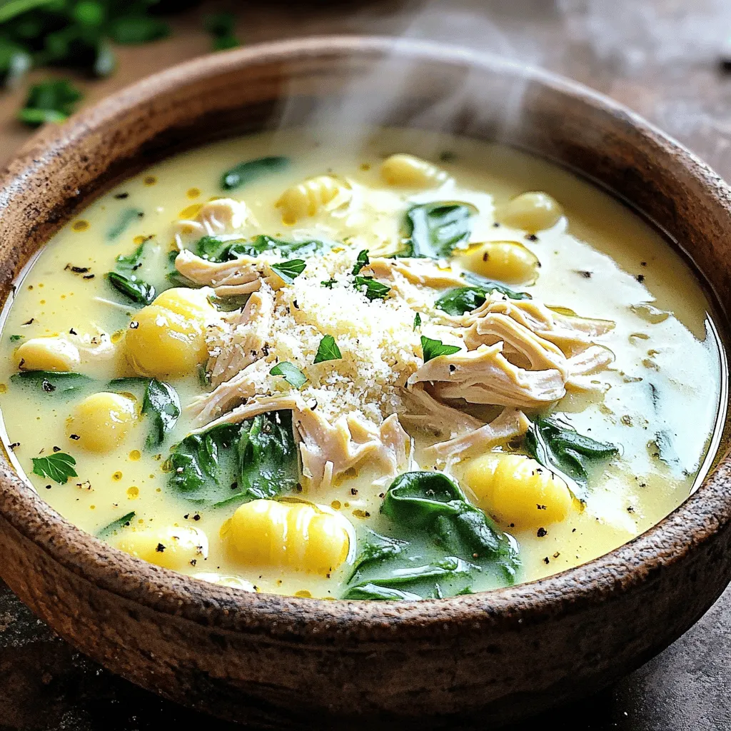 To make your creamy chicken and gnocchi soup even better, use fresh herbs. Fresh thyme or parsley adds bright notes. You can also try adding a splash of lemon juice. This small addition brings a nice zing to the soup. If you want a richer taste, use homemade chicken broth instead of store-bought. It makes a big difference!