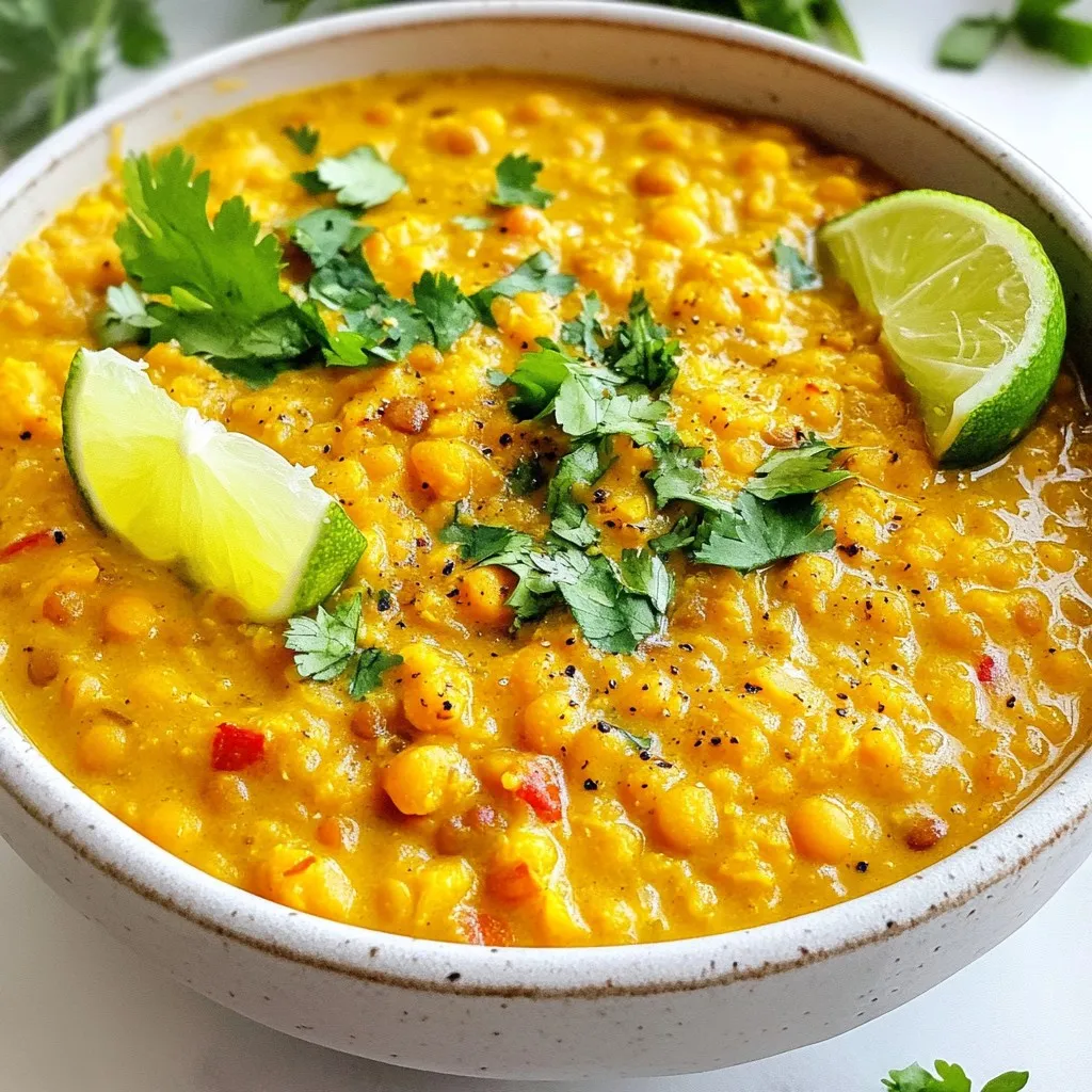 After cooking, remove the pot from heat and let it sit for a few minutes. This helps the flavors settle. Serve it warm in deep bowls, topped with fresh coriander leaves and a couple of lime wedges. Enjoy your delicious creamy coconut lentil curry!