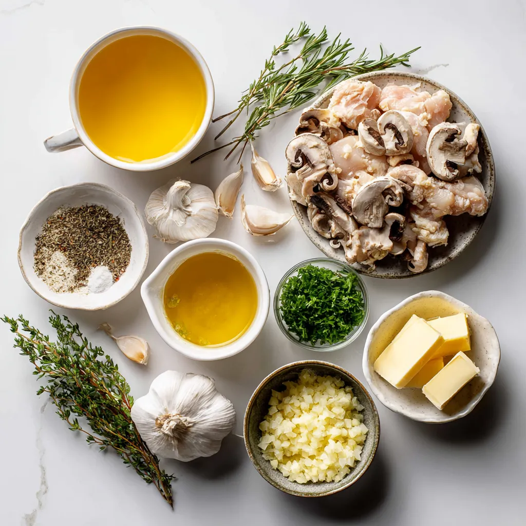 To make creamy garlic mushroom chicken, you need a few simple ingredients. Here’s what you will need: