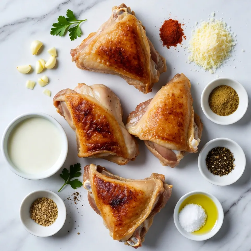 To make creamy garlic Parmesan chicken thighs, you need the following: