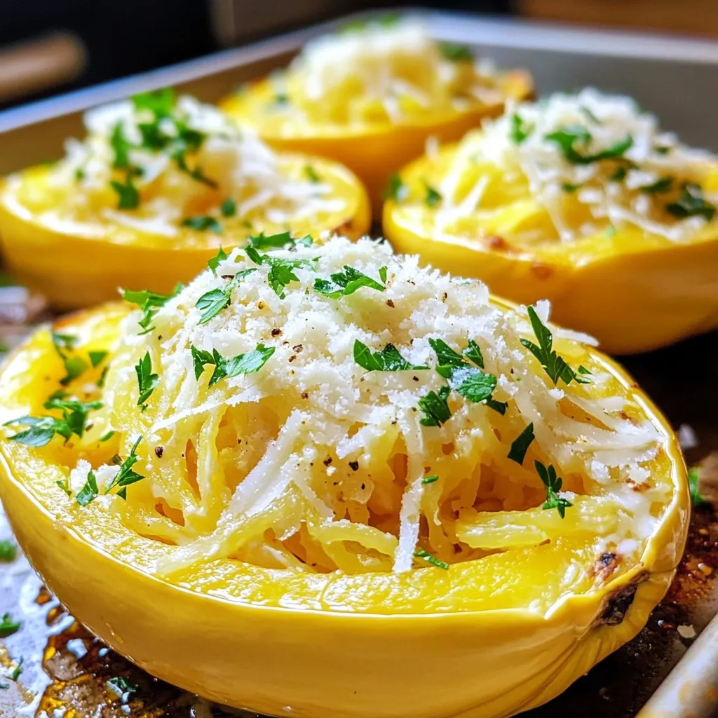 These ingredients come together to create a rich and creamy dish. The spaghetti squash serves as a healthy base, while the garlic and Parmesan add tons of flavor. Using fresh herbs gives the meal a nice touch. Don’t forget the parsley! It adds both color and freshness to your plate. Each item plays a key role in making this dish a delight for your taste buds.