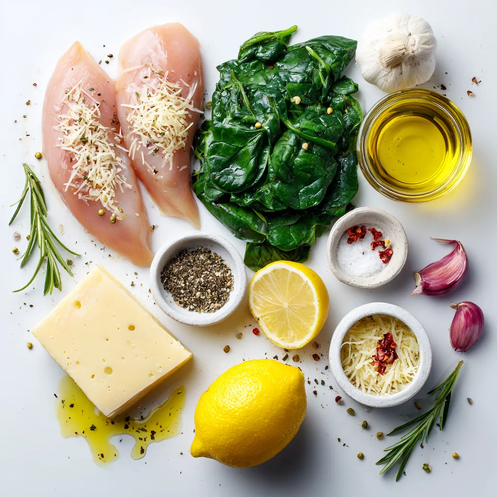 First, preheat your oven to 375°F (190°C). This step is key for even cooking. While the oven heats, gather all your ingredients. You need chicken breasts, spinach, cream cheese, Parmesan cheese, garlic, onion powder, black pepper, salt, olive oil, lemon juice, and optional red pepper flakes. Having everything ready makes cooking smooth and fun.