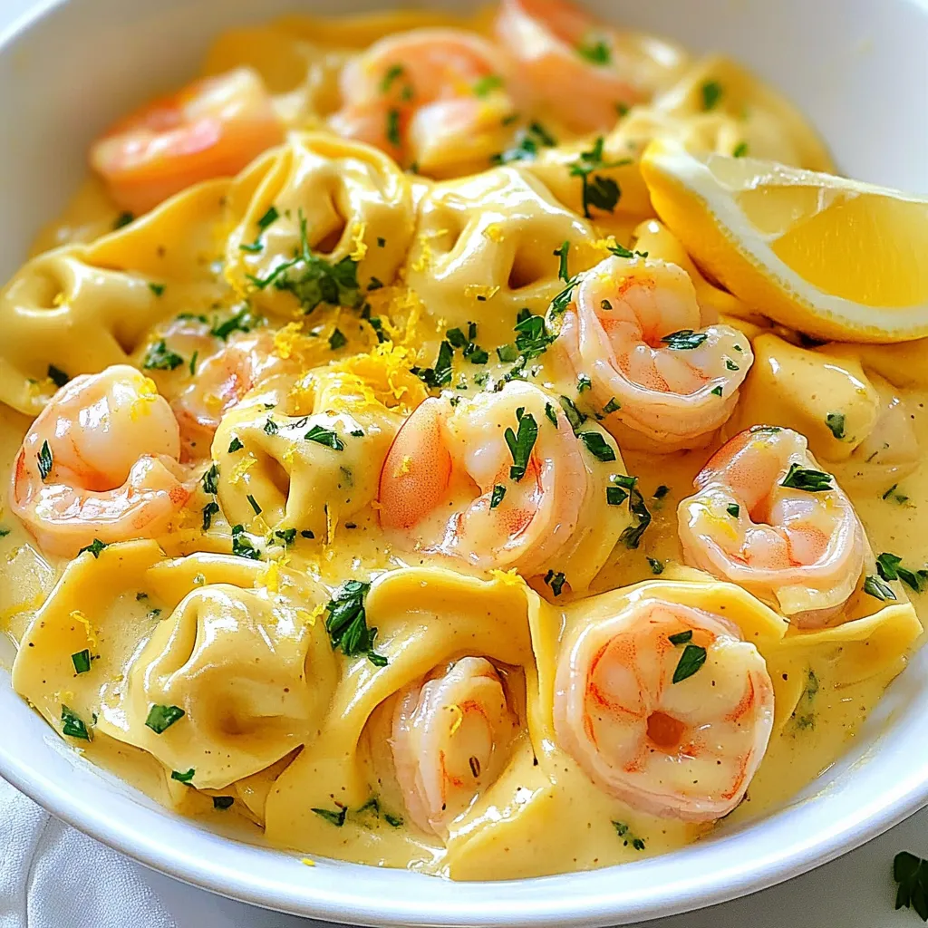 A delicious and creamy pasta dish featuring shrimp and cheese tortellini, brightened with lemon.