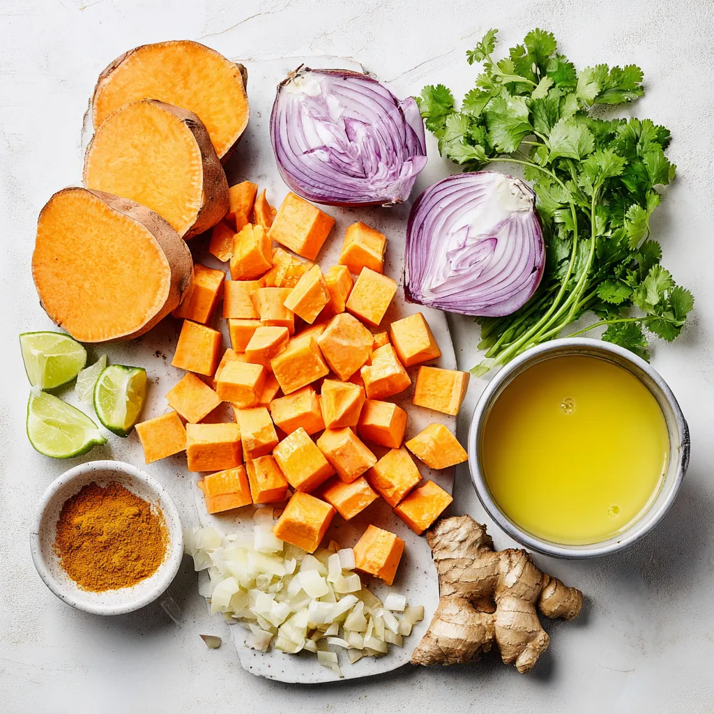 These ingredients form the heart of the soup. Sweet potatoes give it a natural sweetness. Onion and garlic add depth. Ginger brings a warm kick. Vegetable broth creates a rich base. Coconut milk makes it creamy and smooth.