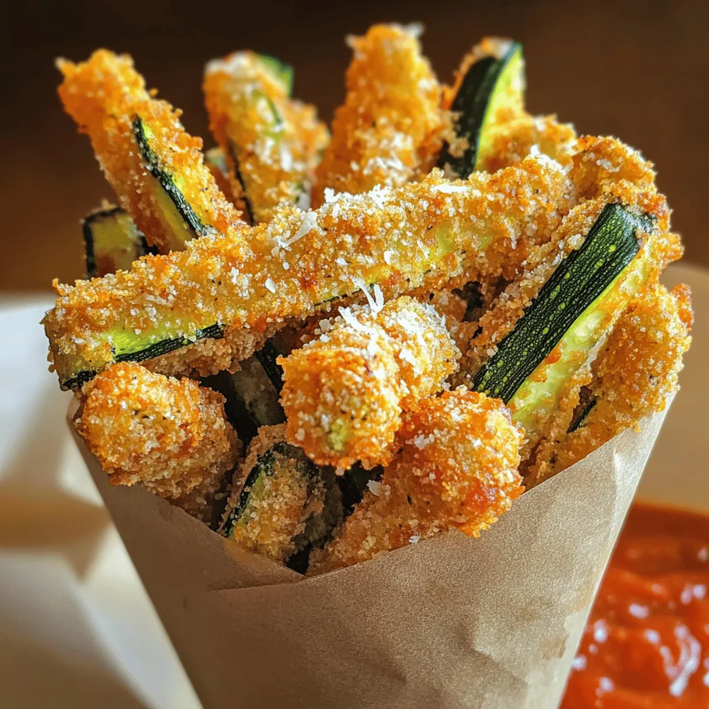 Pair your crispy zucchini fries with tasty dipping sauces like marinara or ranch. This adds fun and flavor. For a unique touch, serve them in decorative cones or small baskets. This makes the dish look special and appealing.