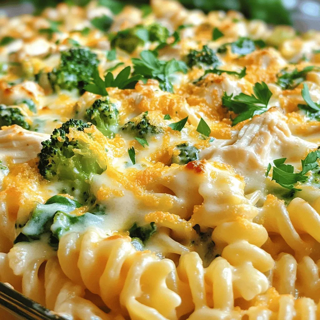These items create a creamy and filling bake. The pasta gives a nice base. The chicken adds protein, and the cheeses make it rich.