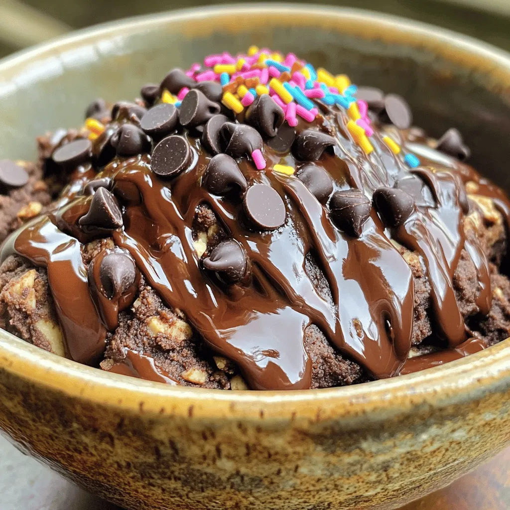 Next, fold in the dark chocolate chips. They will melt slightly and add extra flavor. If you want a sweeter treat, taste the batter and adjust sweetness by adding more maple syrup if needed. Finally, transfer the batter to a serving dish or individual bowls. For a fun touch, you can add chocolate sprinkles on top. Enjoy your delicious treat, or store it in the fridge for up to three days.