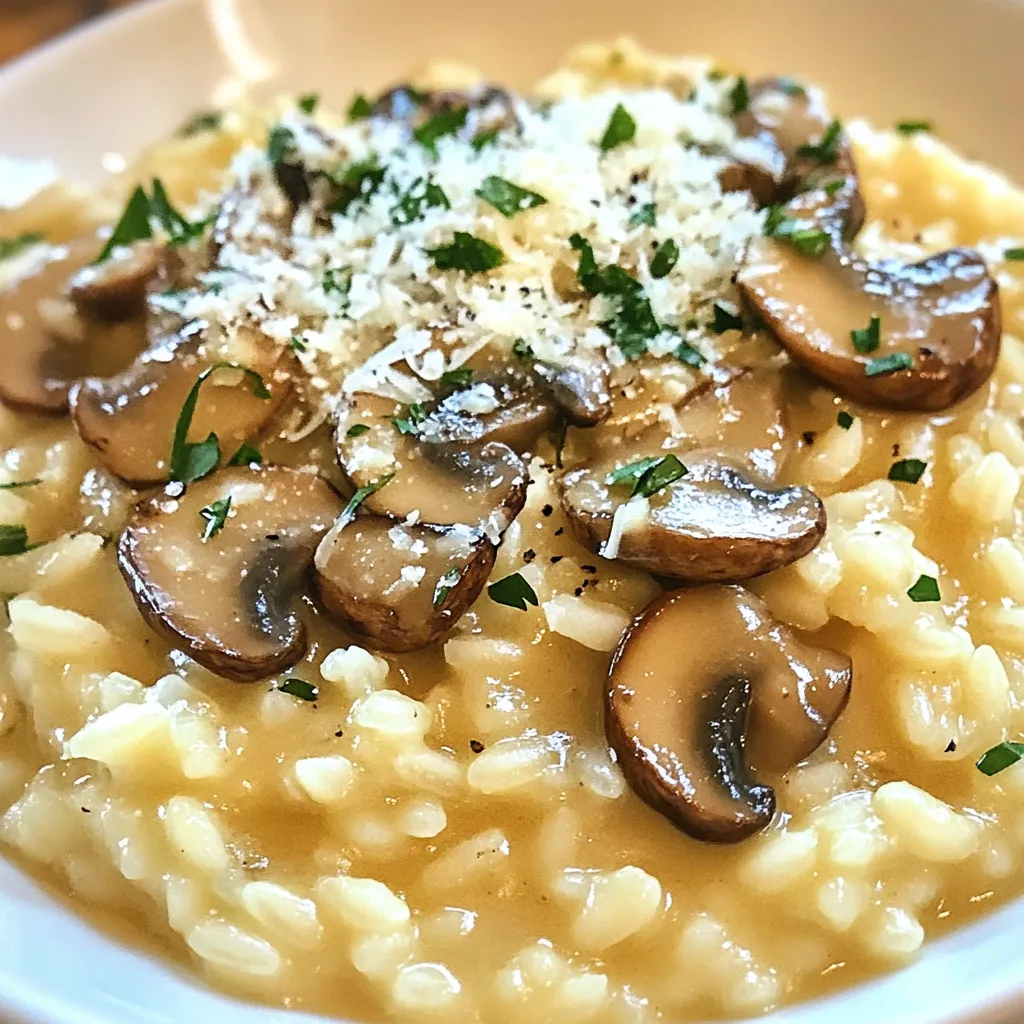 A creamy and flavorful risotto made with Arborio rice, garlic, mushrooms, and Parmesan cheese.