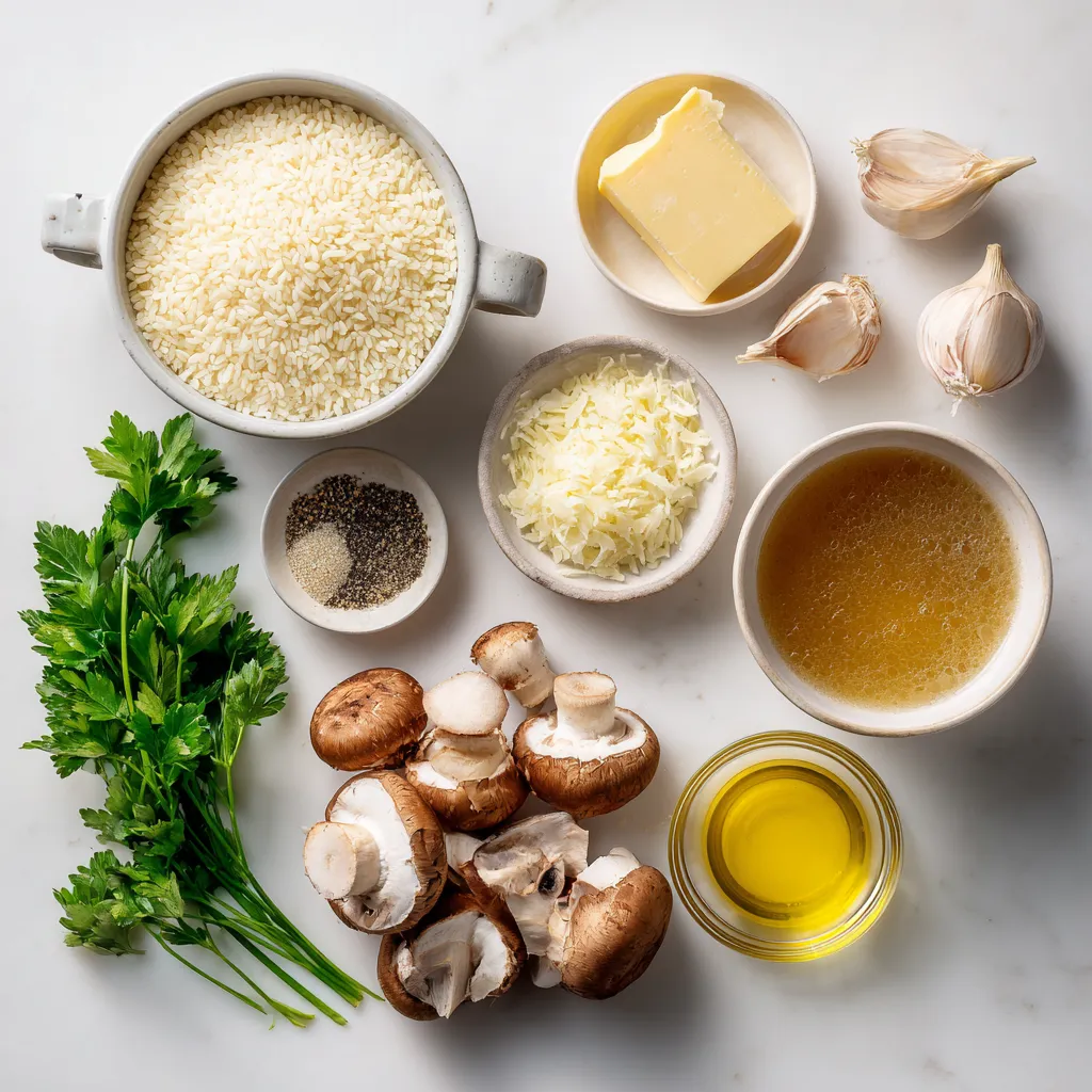 To make Garlic Butter Mushroom Risotto, you need a few key ingredients. Each one plays a special role in creating that rich, creamy flavor.