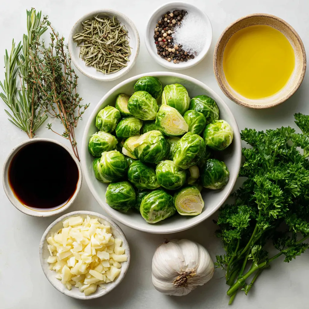 To make Garlic Herb Roasted Brussels Sprouts, you need the following ingredients: