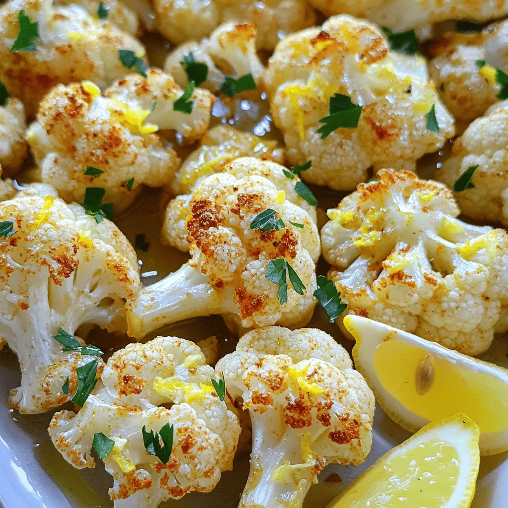 ![To make Garlic Lemon Roasted Cauliflower, you need a few key items. Here’s the list: - 1 large head of cauliflower, cut into florets - 4 cloves of garlic, minced - 3 tablespoons olive oil - 1 lemon, zested and juiced - 1 teaspoon smoked paprika - 1 teaspoon salt - ½ teaspoon black pepper - Fresh parsley, chopped for garnish - Lemon wedges for serving These ingredients come together to create a bright and tasty dish. You can add some optional ingredients to boost the flavor. Consider these extras: - Parmesan cheese, for a savory touch - Capers, for a briny kick - Chili flakes, if you like heat These optional items add layers of taste and make the dish your own. Spices can change the whole vibe of your dish. Here are some ideas: - Curry powder for a warm twist - Cumin for an earthy flavor - Dried herbs like thyme or oregano for freshness Feel free to mix and match spices. Each choice makes your Garlic Lemon Roasted Cauliflower unique. For the full recipe, check [Full Recipe]. Start by washing the cauliflower well. Remove the leaves and cut it into bite-sized florets. This helps the cauliflower cook evenly. You want about 4 cups of florets for this dish. Next, gather your other ingredients: minced garlic, olive oil, lemon, smoked paprika, salt, and black pepper. Zest the lemon first, then juice it. This will add a fresh taste. In a large bowl, combine the cauliflower florets with the minced garlic. Add 3 tablespoons of olive oil, lemon zest, and lemon juice. Then, sprinkle in 1 teaspoon of smoked paprika, 1 teaspoon of salt, and ½ teaspoon of black pepper. Mix everything well. You want each piece to be covered in the yummy seasonings. This step is key for flavor, so don’t rush it! Preheat your oven to 425°F (220°C). Spread the coated cauliflower on a baking sheet lined with parchment paper. Make sure to leave space between the florets. This helps them roast nicely. Roast for 25-30 minutes until they turn golden brown. Toss the cauliflower halfway through to ensure even cooking. When done, let it cool for a couple of minutes. Garnish with fresh parsley and serve with lemon wedges. This adds a bright touch to your dish. For the full recipe, check the detailed instructions above. To get a crispy texture, follow these tips. First, dry the cauliflower well after washing it. Moisture makes it steam instead of roast. Second, spread the florets in a single layer on the baking sheet. Crowding them leads to soggy bites. Finally, toss the cauliflower halfway through the cooking time. This helps it brown evenly. For extra crunch, you can sprinkle some breadcrumbs on top before roasting. Using the right tools makes cooking easier. A large bowl helps mix all ingredients well. A sharp knife is key for cutting the cauliflower into even florets. I recommend a sturdy baking sheet with a rim to catch any drips. Parchment paper prevents sticking and makes cleanup quick. A spatula is great for flipping the cauliflower while it cooks. These tools will speed up your prep time and improve your results. Avoid these common mistakes for the best outcome. Do not skip the lemon juice; it adds flavor and brightness. Using too much olive oil can make the dish greasy. Stick to three tablespoons for the right balance. Also, don't forget to season well. Salt and pepper enhance the taste. Last, always keep an eye on roasting time. Every oven cooks differently, so check for golden brown color. For the full recipe, refer back to the list of ingredients and steps. {{image_2}} You can easily add more veggies to this dish. Carrots, bell peppers, or broccoli work nicely. Just chop them into similar sizes as the cauliflower. Toss them in with the cauliflower for roasting. This addition brings more color and nutrients to your meal. Plus, it makes the dish more fun! This recipe is already vegan and gluten-free. You can feel good serving it to anyone! If you want to keep it simple, stick to the original recipe. However, you can also swap the olive oil with any plant-based oil. Just remember, the key is to keep the flavors bright and fresh. You can change the flavor profile to match different cuisines. For a spicy kick, add cayenne pepper or chili flakes. If you want an Italian twist, sprinkle in some Italian herbs like oregano or basil. For a Middle Eastern flavor, try adding cumin or coriander. These swaps can give your roasted cauliflower a whole new life. Explore different spices to make this dish your own! For the full recipe, check out the full recipe section. To keep your Garlic Lemon Roasted Cauliflower fresh, first let it cool. Place the leftovers in an airtight container. Store them in the fridge for up to four days. This method keeps the flavors intact. For best results, avoid stacking the cauliflower too high. This helps prevent sogginess. You can freeze Garlic Lemon Roasted Cauliflower for later use. First, let it cool completely. Spread the cauliflower on a baking sheet in a single layer. Freeze for a few hours until firm. Then, transfer the florets to freezer-safe bags. Remove as much air as possible. Label the bags with the date. They can last for up to three months in the freezer. To reheat the cauliflower, preheat your oven to 375°F (190°C). Spread the cauliflower in a single layer on a baking sheet. Heat for about 10-15 minutes. This will help keep it crispy. You can also use a microwave, but it may become soft. If you prefer the oven, this method works best. For a quick fix, heat in a skillet over medium heat until warm. Enjoy the amazing flavors again! For the full details on making this dish, check out the Full Recipe. Garlic Lemon Roasted Cauliflower lasts about three to five days in the fridge. To keep it fresh, store it in an airtight container. This helps it stay flavorful and tasty. When you're ready to eat it again, just reheat in the oven or microwave. Yes, you can use frozen cauliflower. Just make sure to thaw it first. Drain any excess water before mixing with the other ingredients. Frozen cau