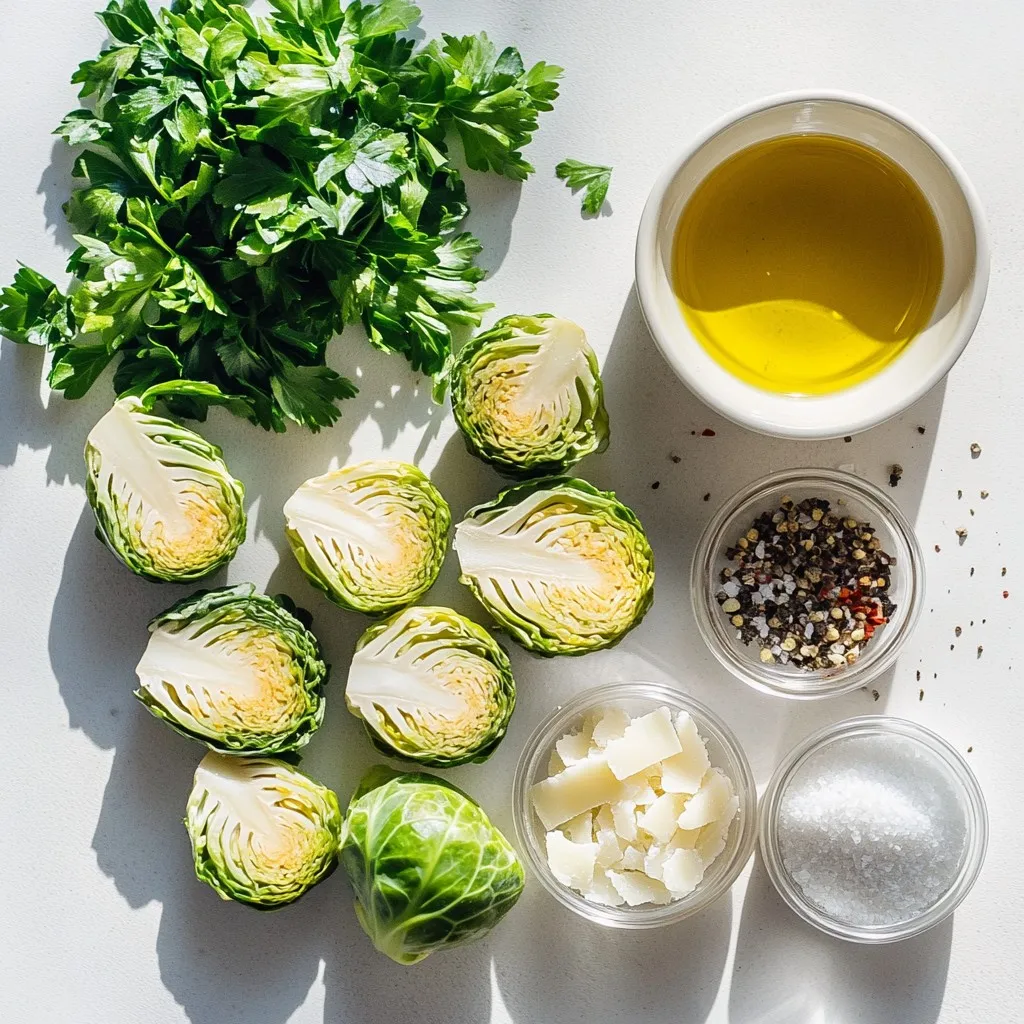 To make Garlic Parmesan Brussels Sprouts, you need simple, fresh ingredients. Here is the list:
