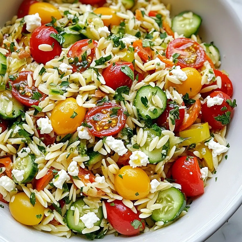 A refreshing and vibrant orzo salad with Mediterranean flavors, perfect for a light meal or side dish.