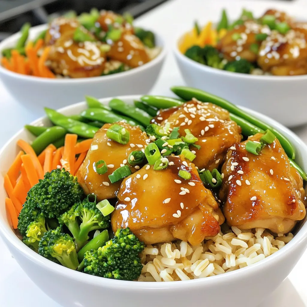 Gathering the right ingredients is key for this honey garlic chicken bowl. The chicken thighs are juicy and tender. They soak up the sweet and savory honey garlic sauce well. Honey adds a rich flavor, while soy sauce balances the sweetness.