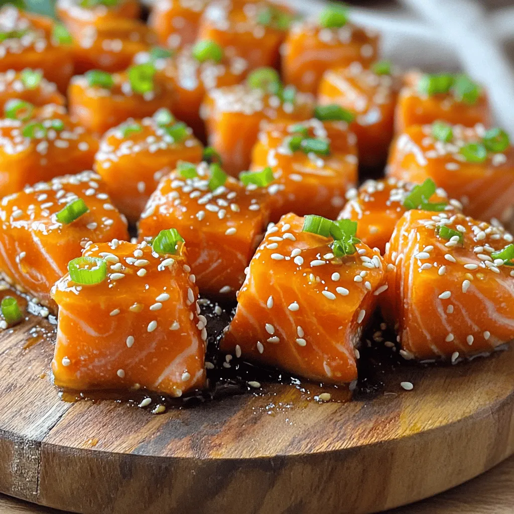 You can switch up the sauce for your salmon bites. Try teriyaki sauce for a sweet touch. A lemon garlic sauce brings a fresh zing. For a spicy kick, use chipotle or harissa. These sauces can change the flavor while keeping it fun.
