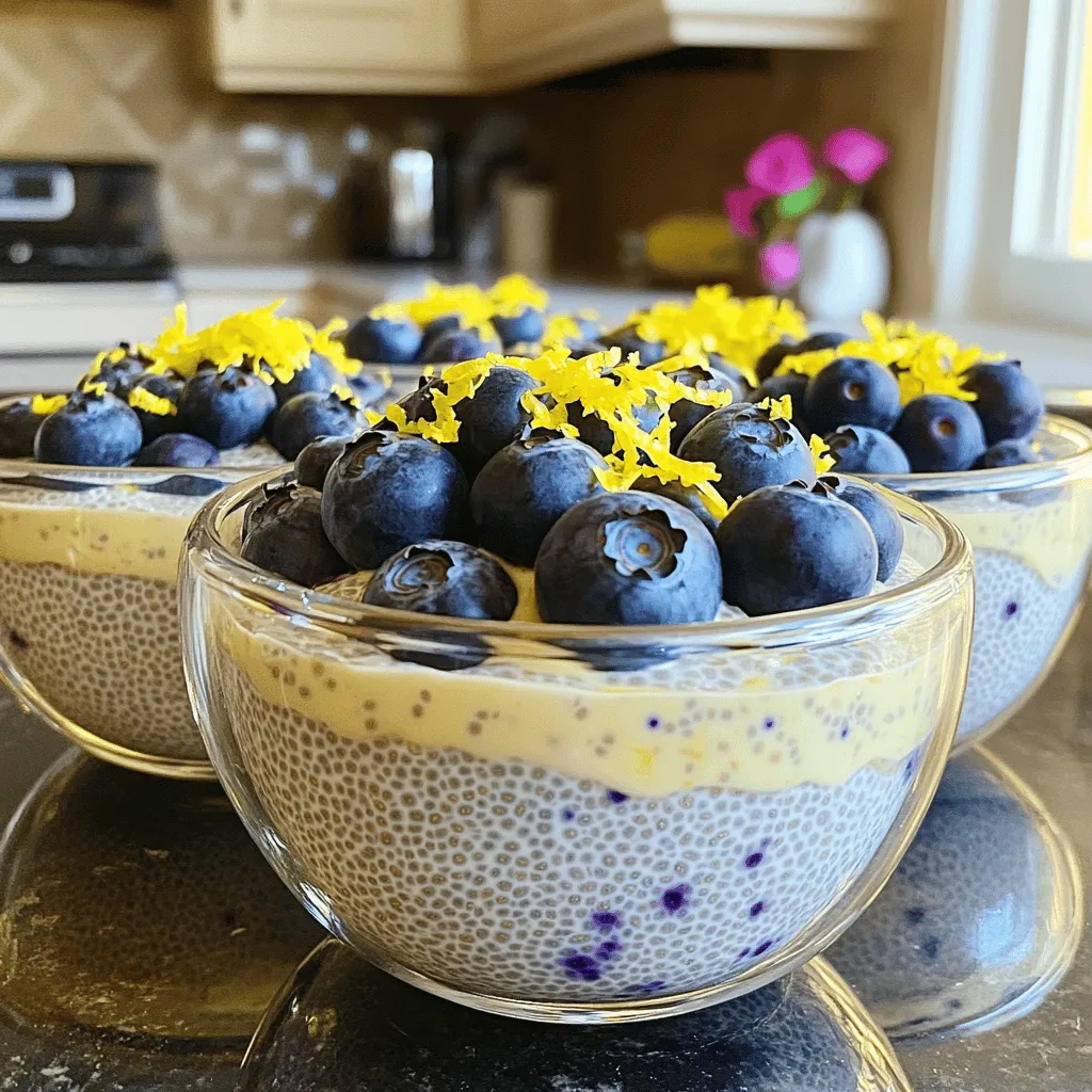 After setting, take the mixture out of the fridge. Stir it well to break up any clumps that may have formed. Now it’s time to fold in the fresh blueberries. Be gentle to keep the berries intact. Once you do this, you can serve the pudding. Spoon it into individual bowls or glasses. For a lovely touch, top with extra blueberries and a sprinkle of lemon zest. This adds flavor and makes it look pretty. Enjoy your Lemon Blueberry Chia Pudding!