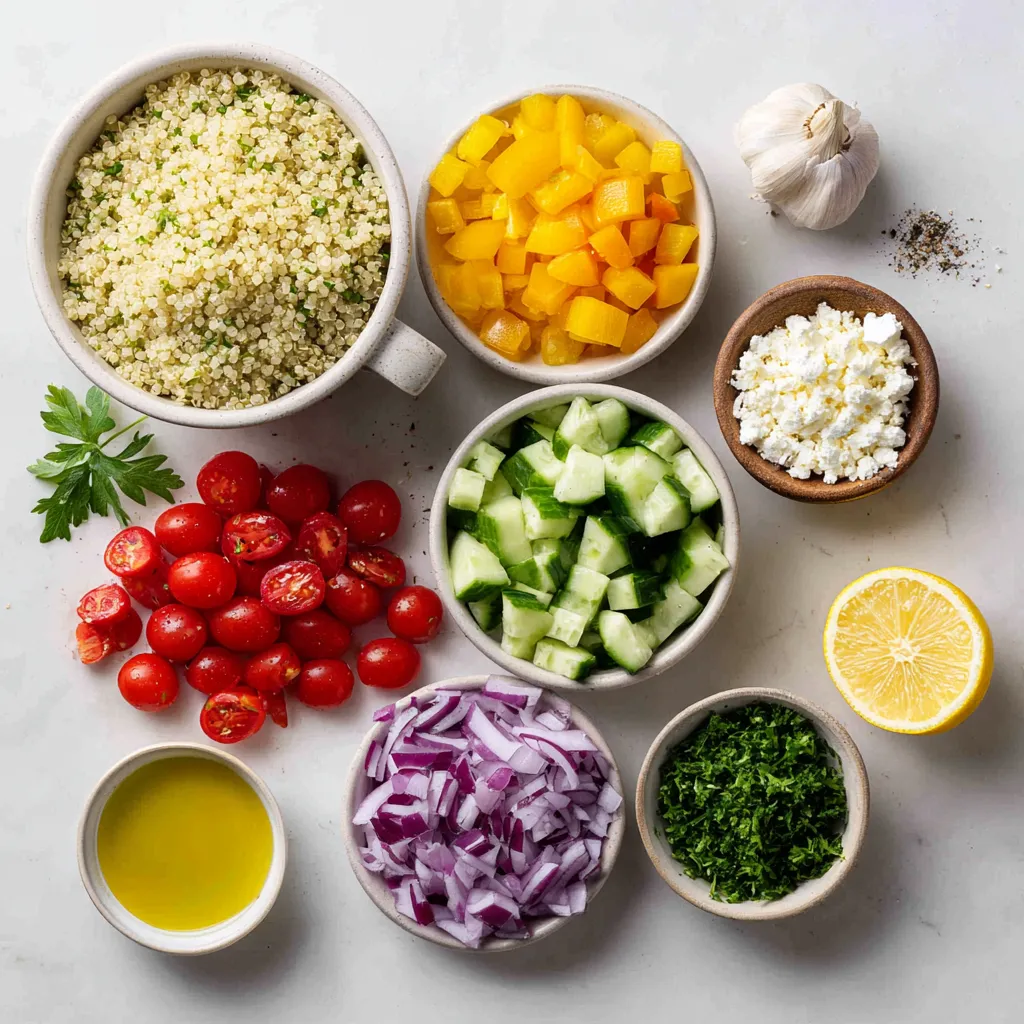 The main ingredients for this lemon garlic quinoa salad are simple and fresh. You will need: