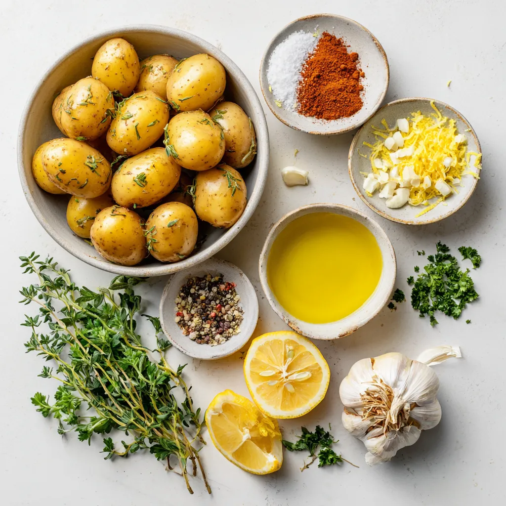 These main ingredients form the base of your dish. Baby potatoes are the best choice for this recipe. They cook evenly and become soft inside while staying crispy outside. Olive oil adds flavor and helps the potatoes roast nicely. Minced garlic brings a bold and savory taste that complements the lemon.