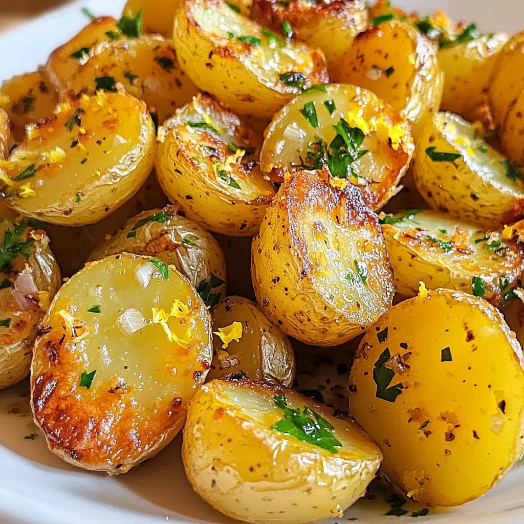 A delicious side dish of roasted baby potatoes with lemon and garlic.