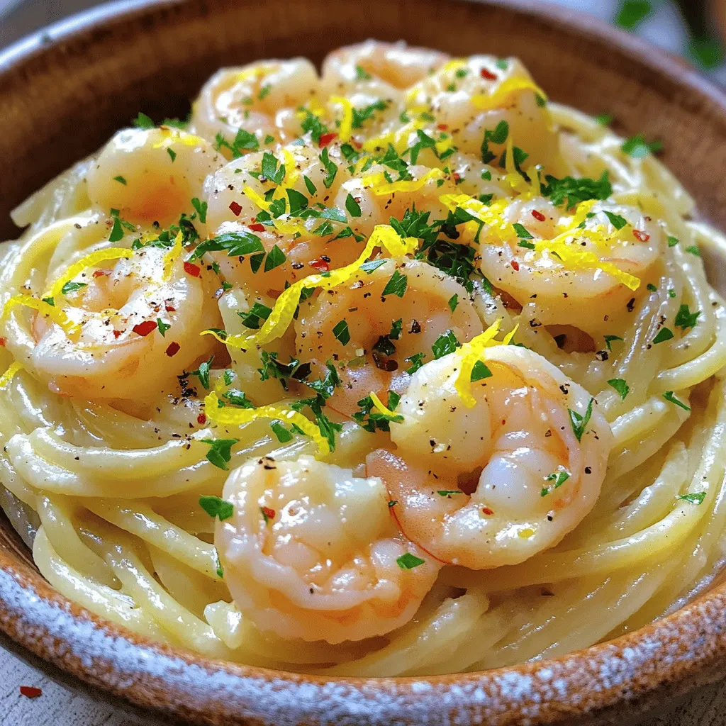 ![- 8 ounces spaghetti or linguine - 1 pound large shrimp, peeled and deveined - 4 cloves garlic, minced - 2 tablespoons olive oil - 2 tablespoons unsalted butter - Zest of 1 lemon - 2 tablespoons fresh lemon juice - 1/4 teaspoon red pepper flakes (optional) - Salt and pepper to taste - 1/4 cup freshly chopped parsley - Grated Parmesan cheese for serving (optional) Use precise measurements for each ingredient. This helps create the best taste. Fresh ingredients matter a lot in this dish. Fresh shrimp, garlic, and herbs make a big difference. Always choose the best quality you can find. You can add red pepper flakes for heat. Toss in some spinach or cherry tomatoes for color and nutrition. If you need gluten-free options, use gluten-free pasta. This way, everyone can enjoy this tasty meal! Explore these variations to make the dish your own. To cook the pasta perfectly, start by boiling salted water in a large pot. Use enough water to let the pasta move freely. Once the water boils, add 8 ounces of spaghetti or linguine. Cook it according to the package instructions until it is al dente. This usually takes about 8 to 10 minutes. Make sure to reserve 1 cup of pasta water before draining. This water is starchy and helps to bind the sauce later. While the pasta cooks, heat a large skillet over medium heat. Add 2 tablespoons of olive oil and 1 tablespoon of butter. Let the butter melt fully. Then, add 4 cloves of minced garlic and 1/4 teaspoon of red pepper flakes if you like some heat. Sauté for about 1 minute. Next, add 1 pound of large shrimp in a single layer. Season with salt and pepper. Cook for 2 to 3 minutes on one side until they turn pink. Flip them and cook for another 1 to 2 minutes. Do not overcook; they should be firm and opaque. Once done, remove the shrimp from the skillet and set them aside. In the same skillet, add the drained pasta. Pour in 1/2 cup of the reserved pasta water. Add the lemon zest and lemon juice. Toss everything gently over medium heat. The pasta should be coated in the sauce. If it looks dry, add more pasta water slowly until you reach the right consistency. Finally, return the cooked shrimp to the skillet. Mix well to combine all the flavors. Adjust seasoning with more salt, pepper, or lemon juice if needed. Serve the pasta hot, and enjoy your delicious meal! For the full recipe, check [Full Recipe]. Seasoning is key. Always add salt and pepper at every cooking step. This builds depth. Fresh herbs brighten dishes. Try parsley, basil, or chives as garnishes. They add color and taste. Prep ingredients first. Chop garlic and parsley ahead of time. Keep shrimp ready to cook. Use a garlic press to save time. A non-stick skillet helps cook shrimp evenly. This way, you finish fast. Do not overcook shrimp. They should turn pink and curl slightly. If they look rubbery, they cooked too long. For pasta, make sure to use enough water. Too little makes it sticky. Always reserve pasta water; it helps mix flavors later. {{image_2}} You can change the proteins in this dish. Try using scallops or chicken instead of shrimp. Both options bring their own unique flavors. For a vegetarian twist, mushrooms or zucchini work well. Slice the mushrooms or cubes of zucchini. They add a nice texture and absorb flavors well. Herbs can change the taste a lot. Try adding fresh basil or thyme for a different twist. These herbs add fresh notes that brighten the dish. If you want a richer taste, consider adding cream. Mixing in a bit of cream can make the sauce silky and smooth. You could also try different sauces to find what you love. Pair your pasta with a side salad or garlic bread. These dishes enhance the meal and add variety. Wine can also make a great pairing. A crisp white wine like Sauvignon Blanc matches well with shrimp and lemon. For a beautiful plate, arrange the pasta in a nest shape. Top it with shrimp, a sprinkle of parsley, and lemon zest. This makes it look restaurant-worthy. For more ideas, check out the Full Recipe for Lemon Garlic Shrimp Pasta. Enjoy exploring these variations! To keep your Lemon Garlic Shrimp Pasta fresh, store it in an airtight container. Place it in the fridge within two hours of cooking. This dish stays fresh for up to three days. If you want to keep it longer, freezing is a better option. When reheating, use the stovetop for the best results. Add a splash of reserved pasta water to keep it moist. Heat over low to medium heat. Stir gently until warm. This method helps retain the dish's flavor and texture. To freeze your pasta, let it cool completely. Then, transfer it to a freezer-safe container. It can last up to three months in the freezer. When you’re ready to eat, thaw it overnight in the fridge. Reheat it on the stovetop, adding a bit of water to bring back moisture. To prepare Lemon Garlic Shrimp Pasta, you need 15 minutes for prep and 15 minutes for cooking. The total time is 30 minutes. This quick meal makes it easy to enjoy gourmet flavors in no time. Yes, you can double the recipe easily. Just scale the ingredients accordingly. For example, use 2 pounds of shrimp and 16 ounces of pasta. Make sure to adjust the cooking times slightly, as larger amounts may take a bit longer. If you're allergic to shrimp, you can use chicken or scallops. Both options work well with the same flavors. You can also try mushrooms for a vegetarian twist. Just adjust the cooking time to ensure proper doneness. To add heat to your dish, consider using hot sauce like sriracha or red pepper flakes. You can also try adding chopped jalapeños or a dash of cayenne pepper. Mix in these spices while sautéing the garlic for the best flavor. Lemon garlic shrimp pasta combines simple ingredients to create a delicious dish. We covered key ingredients, measurements, and variations to suit your taste. Cooking tips helped you avoid common mistakes and maximize flavor. Remember to store leftovers properly to enjoy later. These steps make your cooking stress-free and fun. With