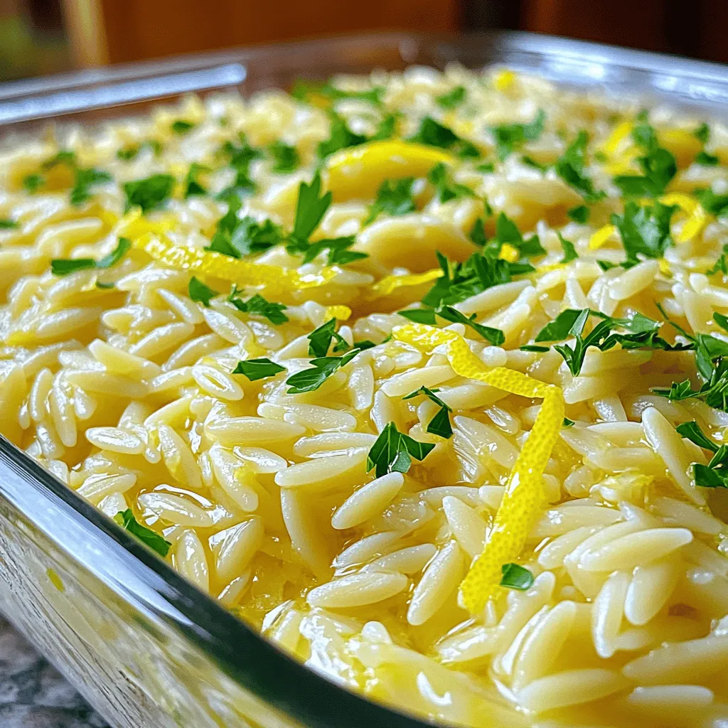 Each ingredient plays a key role. The orzo pasta acts as the base. Olive oil adds richness, while onion and garlic offer depth. Vegetable broth brings flavor and moisture. Lemon zest and juice provide bright, fresh notes. Parmesan cheese gives a creamy touch. Black pepper adds subtle heat, and salt brings all flavors together. Finally, fresh parsley gives a pop of color and fresh taste.