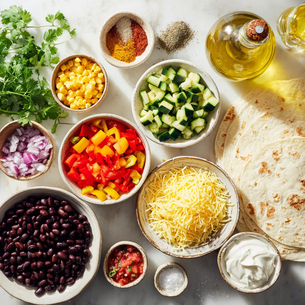 These ingredients create a colorful and tasty quesadilla. I love using fresh veggies for flavor. The cheese adds creaminess, while spices give a nice kick. You can always switch up the veggies or cheese. This flexibility makes it fun to cook. Enjoy experimenting with what you have on hand.
