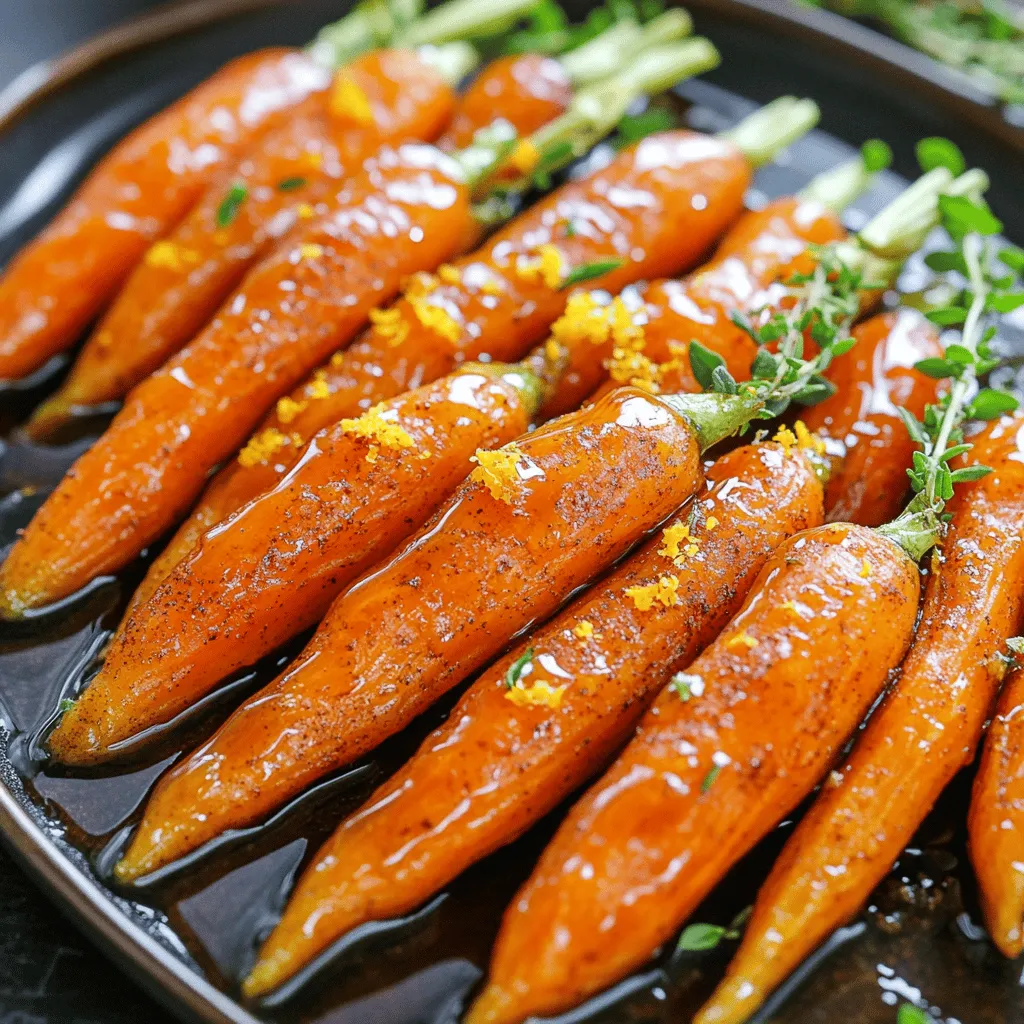 ![To make maple glazed roasted carrots, you'll need just a few simple items. Here’s what to gather: - Baby carrots or regular carrots - Pure maple syrup and olive oil - Spices: cinnamon and nutmeg - Fresh or dried thyme - Optional: orange zest These ingredients work together to create a sweet and savory treat. The carrots bring natural sweetness. The maple syrup enhances that sweetness while adding depth. Olive oil gives a rich flavor and helps with roasting. Cinnamon and nutmeg add warmth and spice, making the dish more complex. Thyme gives a fresh herbal taste that balances the sweetness. If you want a bright twist, try adding orange zest for a hint of citrus. This simple list makes it easy for anyone to create a delicious side dish. For the full recipe, check out the details above! 1. Preheat the oven. Set your oven to 400°F (200°C). This is key to getting nice, roasted carrots. 2. Prepare the maple glaze. In a big bowl, mix together the pure maple syrup, olive oil, cinnamon, nutmeg, salt, and pepper. If you want a citrus twist, add the orange zest and thyme. 1. Tossing carrots in the glaze. Take your baby carrots and add them to the bowl. Use your hands or a spoon to coat the carrots well in the glaze. 2. Arranging carrots on a baking sheet. Line a baking sheet with parchment paper. Spread the glazed carrots out in a single layer. This helps them roast evenly. 3. Roasting time and necessary stirring. Place the baking sheet in the oven. Roast the carrots for 25-30 minutes. Stir them halfway through for even cooking. Look for tender and caramelized carrots. 1. Adding extra maple syrup. After roasting, if you want more sweetness, drizzle a little extra maple syrup over the carrots. 2. Cooling before serving. Let the carrots cool for a few minutes before you serve them. This helps the flavors settle. For the full recipe, you can check the details above. Enjoy your tasty maple glazed roasted carrots! - Carrot size and uniformity: I like to use baby carrots for this recipe. They are sweet and tender. If you use regular carrots, cut them into equal sticks. This helps them cook evenly. Aim for pieces about the same size. - Achieving caramelization: To get that beautiful caramel color, make sure you coat the carrots well in the maple glaze. The sugar in the syrup helps them brown. Roast them at a high heat, around 400°F (200°C). Stir halfway through to ensure even cooking. - Presentation ideas: Serve your roasted carrots on a lovely platter. A sprinkle of fresh thyme adds color. Drizzle some extra maple syrup for a nice touch. This makes the dish pop and look appetizing. - Pairing with other dishes: These carrots are great with roasted chicken or pork. They also pair well with grains like quinoa or rice. Add them to a salad for a sweet crunch. - Substitutes for maple syrup or oil: If you don't have maple syrup, honey works well too. For oil, you can use melted butter or coconut oil. Each will give a different flavor but will still taste great. - Using different spices for variation: Try adding ginger or garlic for an extra kick. You could also use different herbs like rosemary or parsley. Experiment with these flavors to find your favorite mix. For the complete recipe, check out the [Full Recipe]. {{image_2}} For a twist, try adding garlic or ginger to the glaze. Both flavors pair well with sweet maple syrup. Just a clove of minced garlic or a teaspoon of grated ginger can change the whole dish. You can also add nuts for crunch. Chopped walnuts or pecans give a nice texture contrast. Just sprinkle them over the carrots before roasting. This recipe is easy to adapt for different diets. For a vegan version, you already have a great base. The maple syrup and olive oil keep it plant-based. Just ensure your other ingredients are also vegan. For gluten-free folks, this dish is naturally gluten-free. Just double-check your spices for any hidden gluten. You can mix in seasonal vegetables for variety. Root veggies like parsnips or turnips roast well alongside carrots. This adds color and flavor to your dish. Adjusting flavors for holidays can also be fun. For fall, add a pinch of pumpkin spice. For spring, use fresh herbs like dill or parsley. These small changes help keep your dish fresh and exciting. For the full recipe, check out the details above. After you enjoy your maple glazed roasted carrots, store any leftovers in the fridge. Use an airtight container to keep them fresh. Make sure to cool the carrots first. They taste best when eaten within three days. If you want to keep them longer, freezing is a good option. Place the cooled carrots in a freezer-safe bag. Remove as much air as possible before sealing. To enjoy your carrots again, reheat them gently. The oven works best for this. Preheat your oven to 350°F (175°C). Spread the carrots on a baking sheet. Heat them for about 10 minutes or until warm. You can also use the microwave. Place the carrots in a bowl and cover them. Heat in short bursts of 30 seconds, stirring in between. This keeps them tender and tasty. In the fridge, your roasted carrots last up to three days. If you freeze them, they can last for about three months. However, for the best flavor, try to eat them sooner. Over time, the texture may change. Enjoy your maple glazed roasted carrots while they are fresh and tasty! Roasting carrots at 400°F takes about 25 to 30 minutes. The exact time may change based on the size of your carrots. If you use larger pieces, they may need a few more minutes. Stir the carrots halfway through. This helps them cook evenly and caramelize nicely. Yes, you can use regular carrots. Just cut them into sticks about the same size as baby carrots. This helps them cook evenly. Regular carrots may take a few extra minutes to roast due to their size, so keep an eye on them. Maple glazed roasted carrots pair well with many dishes. They taste great with roasted chicken, grilled steak, or baked fish. You can also serve them with quinoa or rice for 