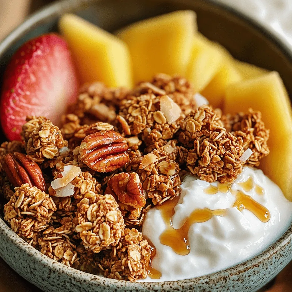 You can boost the flavor of your granola by adding spices. Consider adding nutmeg or ginger for a warm touch. If you want different nuts, swap pecans for almonds or walnuts. You can also try maple extract instead of vanilla for a richer taste. Feel free to mix in seeds like chia or pumpkin for added nutrition.